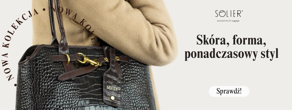 Skórzane akcesoria oraz walizki podróżne to praktyczne dodatki mężczyzn i kobiet, którzy przykładają coraz większą wagę do swojego wyglądu. Sklep internetowy marki Solier to miejsce, gdzie odnajdziesz zarówno męskie i damskie torby na ramię jak również inne stylowe akcesoria wzbogacające Twoją garderobę. Aktówki, nesesery, paski, portfele, biwuary, oraz walizki - wszystkie te przedmioty znajdziesz w naszej nieustannie rozszerzanej ofercie. Dbamy o to, aby zaproponować Ci zarówno konkurencyjną cenę, jak i wysoką jakość wykonania naszych wyrobów. Twoje zakupy w Sieci powinny być również bezpieczne, a Twój wybór - pewny, dlatego też na każdy dodatek z naszego asortymentu będziesz miał minimum 2-letnią gwarancję, aż po 5-letnią dla wyrobów ze skóry naturalnej.