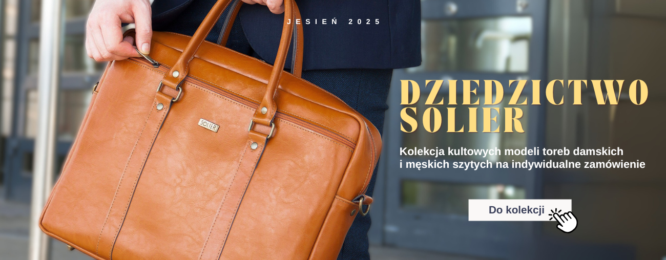 Marka Solier została założona na Podlasiu, w Białymstoku. Dzięki temu wspieramy polski rynek pracy oraz mamy możliwość kontrolowania każdego etapu produkcji. Stawiamy na jakość wykonania, doskonałej jakości materiały, ale także dostosowanie do trendów i potrzeb rynku. Nasze produkty są wykonane z najlepszej jakości materiałów, w znacznej mierze ze skóry naturalnej. Stosujemy najwyższej jakości komponenty i okucia. Dbamy o atrakcyjny wizualnie wygląd, ale także przemyślaną i uporządkowaną przestrzeń wewnątrz akcesoriów. W naszej ofercie można znaleźć produkty zgodne z kanonami klasyki, ale także odpowiadające obecnym trendom (nowoczesny design).