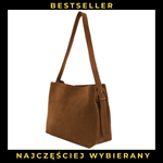 Skórzana zamszowa brązowa torba shopper z regulowanym paskiem Solier FL38 Sienna