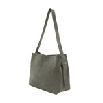 Skórzana zamszowa torba shopper z klamrą na ramię Solier FL39 Maya szara