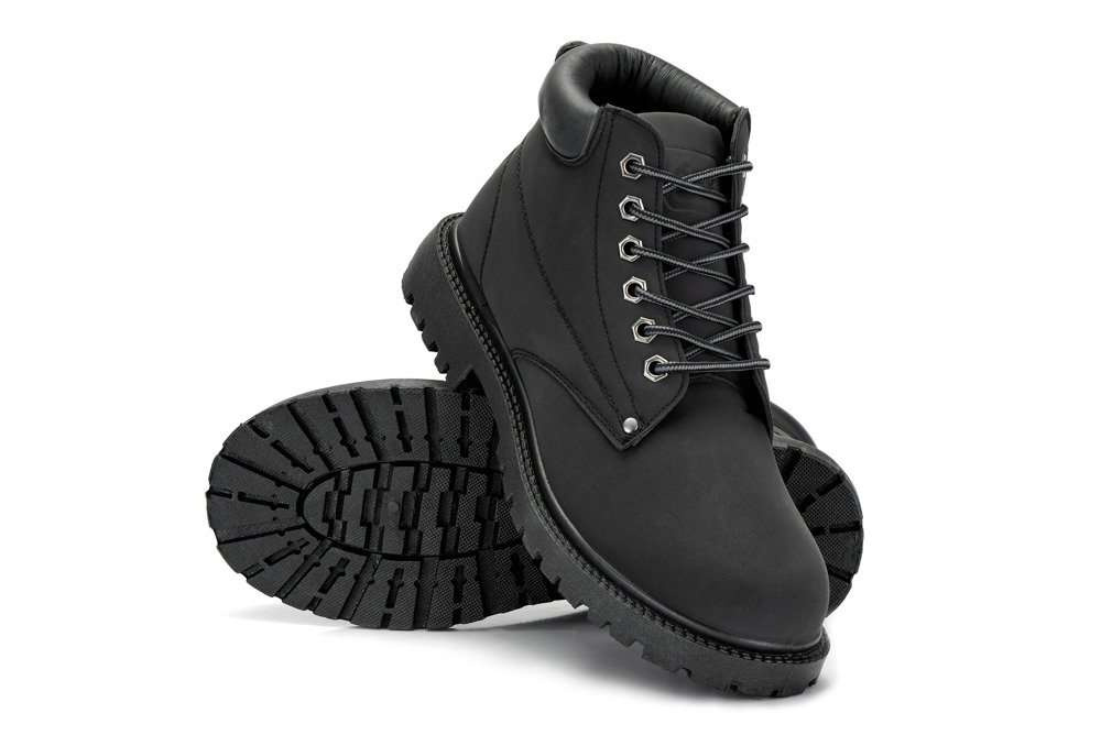 - Czarne trapery męskie wykonane z materiału syntetycznego.