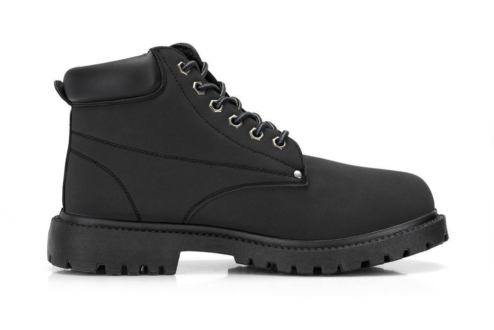 Czarne trapery męskie wykonane z materiału syntetycznego – imitacji nubuku. Niezwykle atrakcyjna cena w połączeniu z wysokiej jakości obuwiem zimowym to główne zalety tego modelu. Model posiada wysoką traperowaną podeszwę, która chroni stopy przed zamoczeniem i z poślizgnięciem.