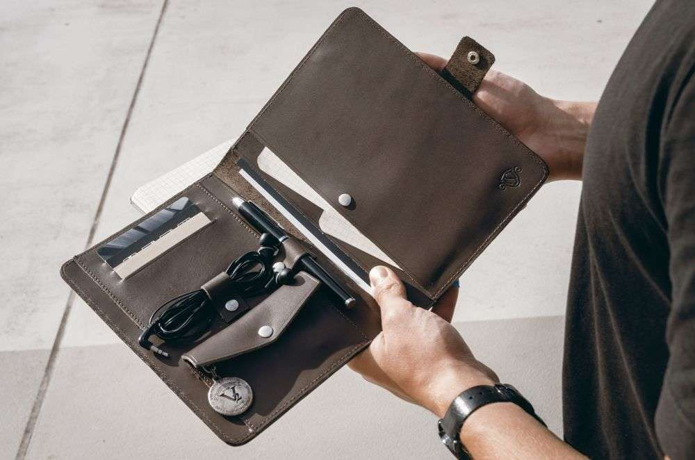 • Minimalistyczny skórzany organizer męski na dokumenty.
