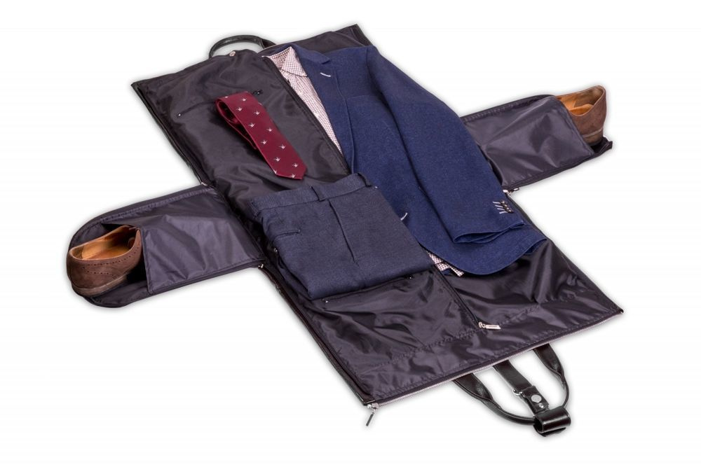 Po bokach dwa oddzielne miejsca na obuwie, co zminimalizuje ryzyko zabrudzenia garnituru oraz zapewni wygodę pakowania ubioru