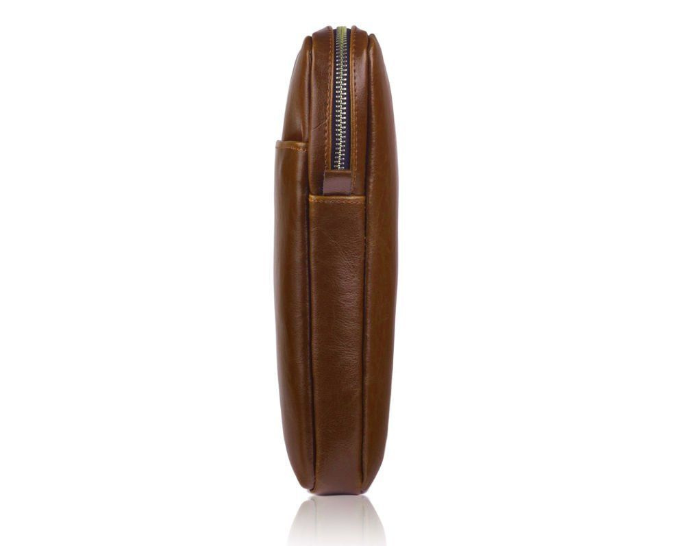 Skórzany pokrowiec pozwali na transportowanie laptopa chroniąc go przed ewentualnym zabrudzeniem lub uszkodzeniem. Dzięki płaskiej budowie świetnie dopasuje się do torby lub plecaka. Etui wyposażone jest w zamek błyskawiczny YKK, który zabezpiecza laptop przed wysunięciem. Wewnątrz znajduje się elegancka, bawełniana podszewka w granatowe pasy. Dodatkowo posiada kieszeń zewnętrzną, zapinaną również na zamek błyskawiczny, która pozwoli na schowanie wszystkich najpotrzebniejszych rzeczy takich jak: ładowarka, telefon, portfel itp. Sprawdzi się zarówno w pracy, na delegacji służbowej, czy też na uczelni.