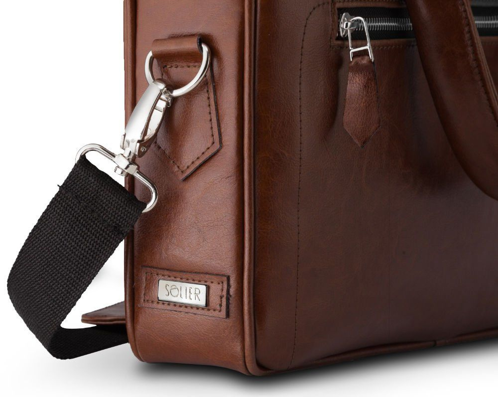 Jednokomorowa skórzana torba z uchwytem na walizkę oraz miejscem na laptopa Solier SL23
