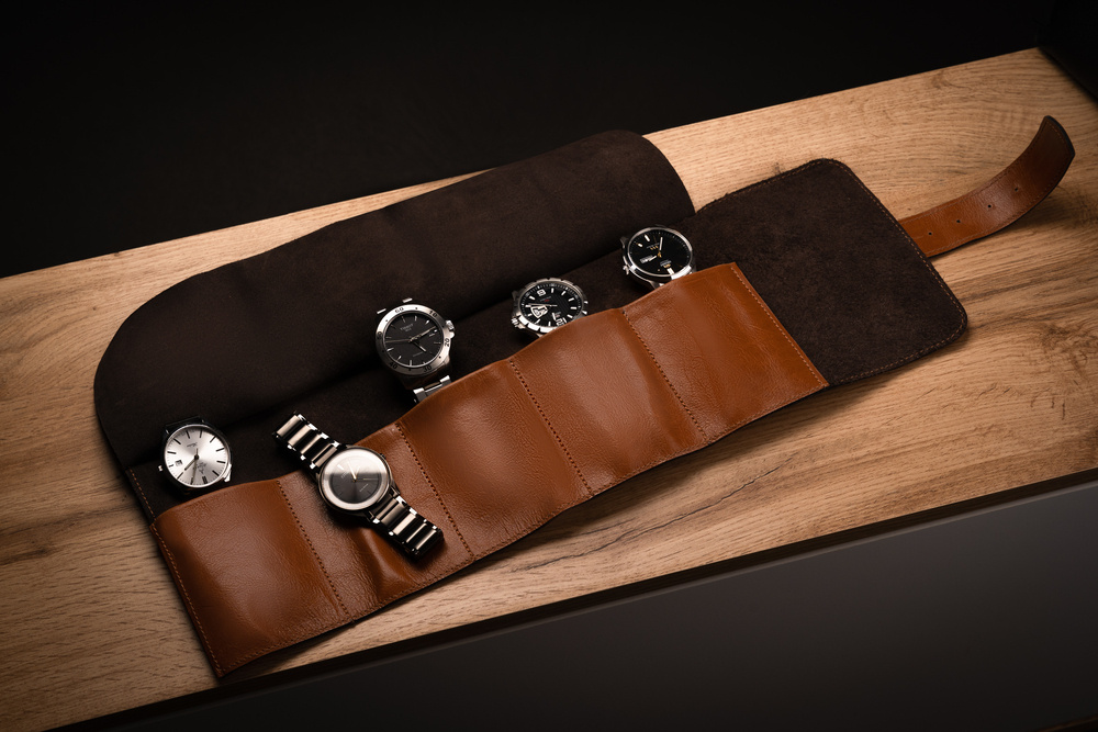 Zwijane etui na zegarki wykonane ze skóry naturalnej