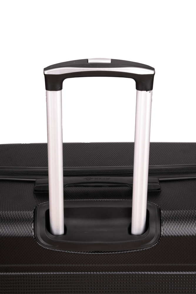 Podróżna walizka średnia M marki Solier stworzona z myślą o najbardziej wymagających klientach. Nowoczesny, lekki model wykonany z bardzo wytrzymałego i odpornego na zarysowanie tworzywa ABS Plus. Wyposażony w dwupoziomową teleskopową rączką oraz zewnętrzne, przyjemne w dotyku gumowe uchwyty. Zabezpieczony zamkiem szyfrowym uniemożliwiającym dostanie się do wnętrza osobom niepożądanym. Posiada trwały, duraluminiowy stelaż wbudowany w walizkę oraz cztery obrotowe kauczukowe kółka, które zapewniają stabilność oraz lekkość i wygodę prowadzenia. Wnętrze wyposażone zostało w wewnętrzne pasy mocujące, zabezpieczające bagaż oraz w sygnowaną podszewkę dzieloną zamkiem błyskawicznym na dwie komory.