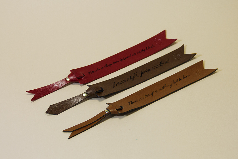 Jako darmowy dodatek do zamówienia oferujemy trwały, laserowy grawer – również wykonany w naszej pracowni. Na zakładce możemy wykonać dowolny napis przygotowany przez Ciebie specjalnie dla obdarowanej osoby. Może być to cytat z ulubionej książki, życzenia lub same inicjały czy nazwisko. Przykładowe realizacje można zobaczyć na zdjęciach. Napisz w wiadomości do zamówienia grawer, który mamy umieścić na zakładce. Jeśli chodzi Ci po głowie coś mniej standardowego – napisz do nas, postaramy się spełnić Twoją wizję!