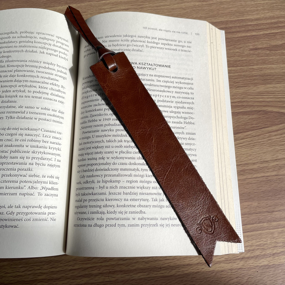 Personalizowana skórzana zakładka do książki brąz