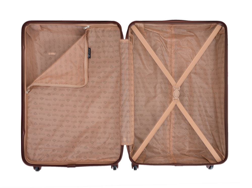 Podróżna walizka średnia M marki Solier stworzona z myślą o najbardziej wymagających klientach. Nowoczesny, lekki model wykonany z bardzo wytrzymałego i odpornego na zarysowanie tworzywa ABS Plus. Wyposażony w dwupoziomową teleskopową rączką oraz zewnętrzne, przyjemne w dotyku gumowe uchwyty. Zabezpieczony zamkiem szyfrowym uniemożliwiającym dostanie się do wnętrza osobom niepożądanym. Posiada trwały, duraluminiowy stelaż wbudowany w walizkę oraz cztery obrotowe kółka, które zapewniają stabilność oraz lekkość i wygodę prowadzenia. Wnętrze wyposażone zostało w wewnętrzne pasy mocujące, zabezpieczające bagaż oraz w sygnowaną podszewkę dzieloną zamkiem błyskawicznym na dwie komory.