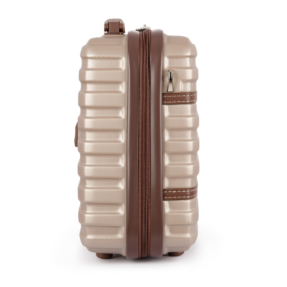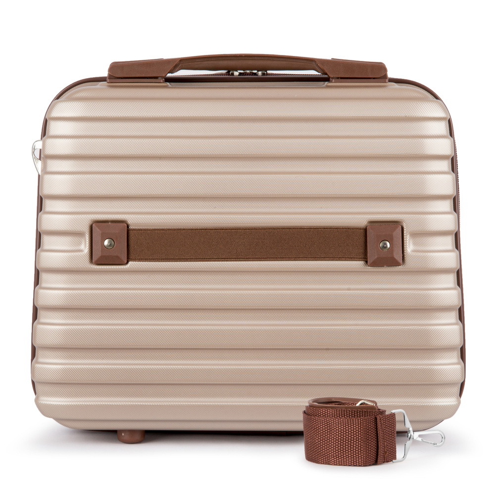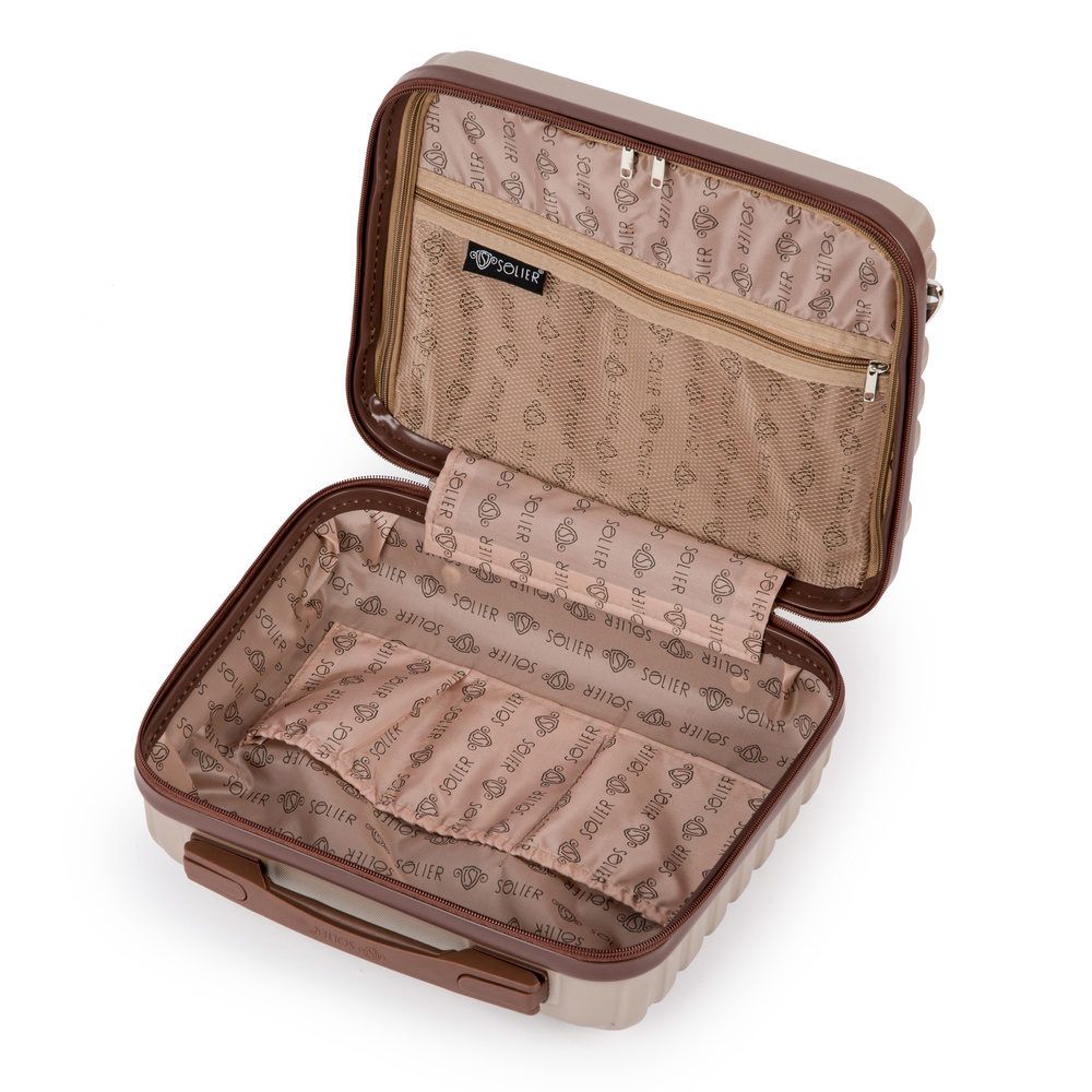 Kuferek podróżny marki Solier stworzona z myślą o najbardziej wymagających klientach. Nowoczesny, lekki model wykonany z bardzo wytrzymałego i odpornego na zarysowanie tworzywa ABS Plus. Wyposażony przyjemne w dotyku gumowe uchwyty. Posiada 3 kieszenie w środku, w tym jedną zapinaną na zamek, wykonaną z siateczki. Do kuferka dołączony jest odpinany, regulowany pasek, umożliwiający noszenie na ramieniu.
