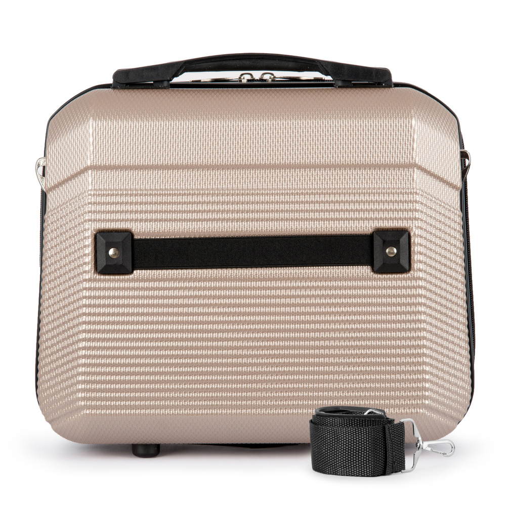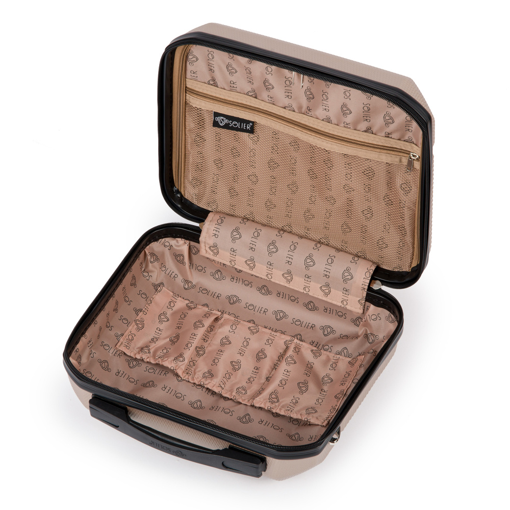 Kuferek podróżny marki Solier stworzona z myślą o najbardziej wymagających klientach. Nowoczesny, lekki model wykonany z bardzo wytrzymałego i odpornego na zarysowanie tworzywa ABS Plus. Wyposażony przyjemne w dotyku gumowe uchwyty. Posiada 3 kieszenie w środku, w tym jedną zapinaną na zamek, wykonaną z siateczki. Do kuferka dołączony jest odpinany, regulowany pasek, umożliwiający noszenie na ramieniu.