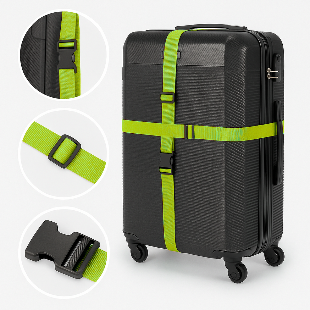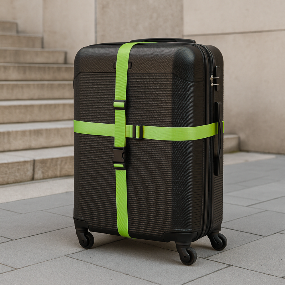 Pas bagażowy posiada solidne klamry, które zapewniają pewne i trwałe zapięcie, uniemożliwiając przypadkowe rozpięcie się pasa w trakcie transportu. Można go również łatwo regulować, aby zapewnić odpowiednie napięcie i stabilność podczas przenoszenia walizki.
