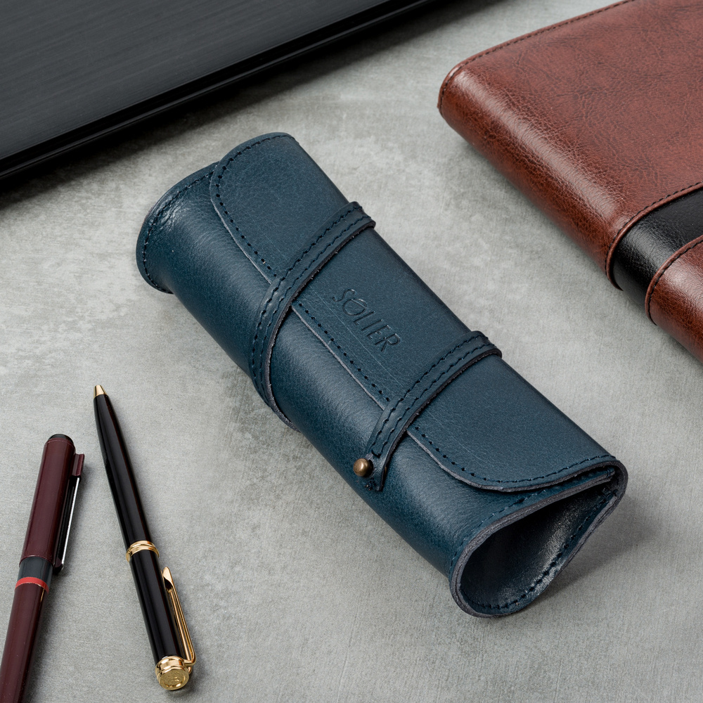 Wiązany skórzany piórnik etui na długopisy Solier SA52 granatowy