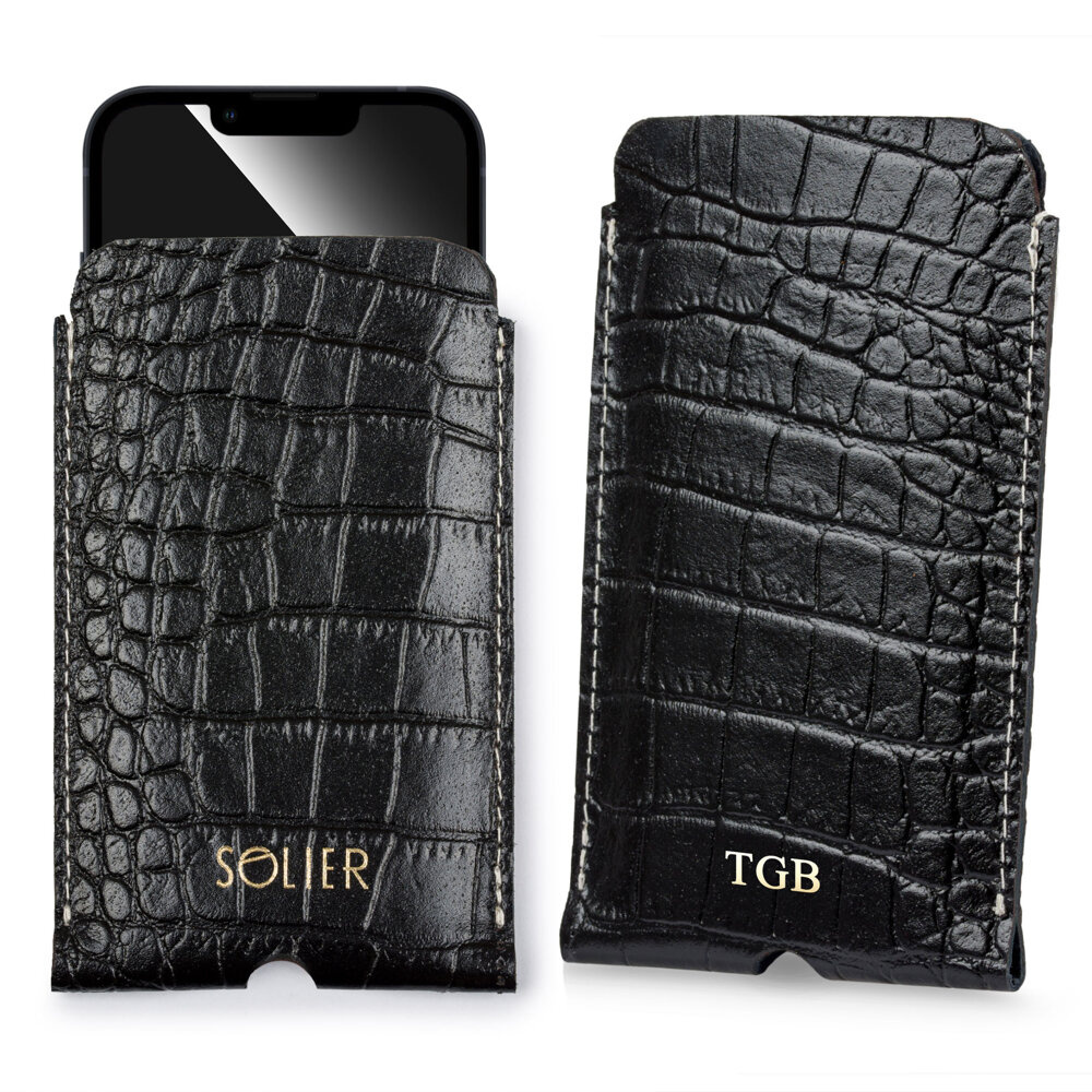 Personalizowane skórzane etui na IPhone 11 Solier SA58 czarny wąż