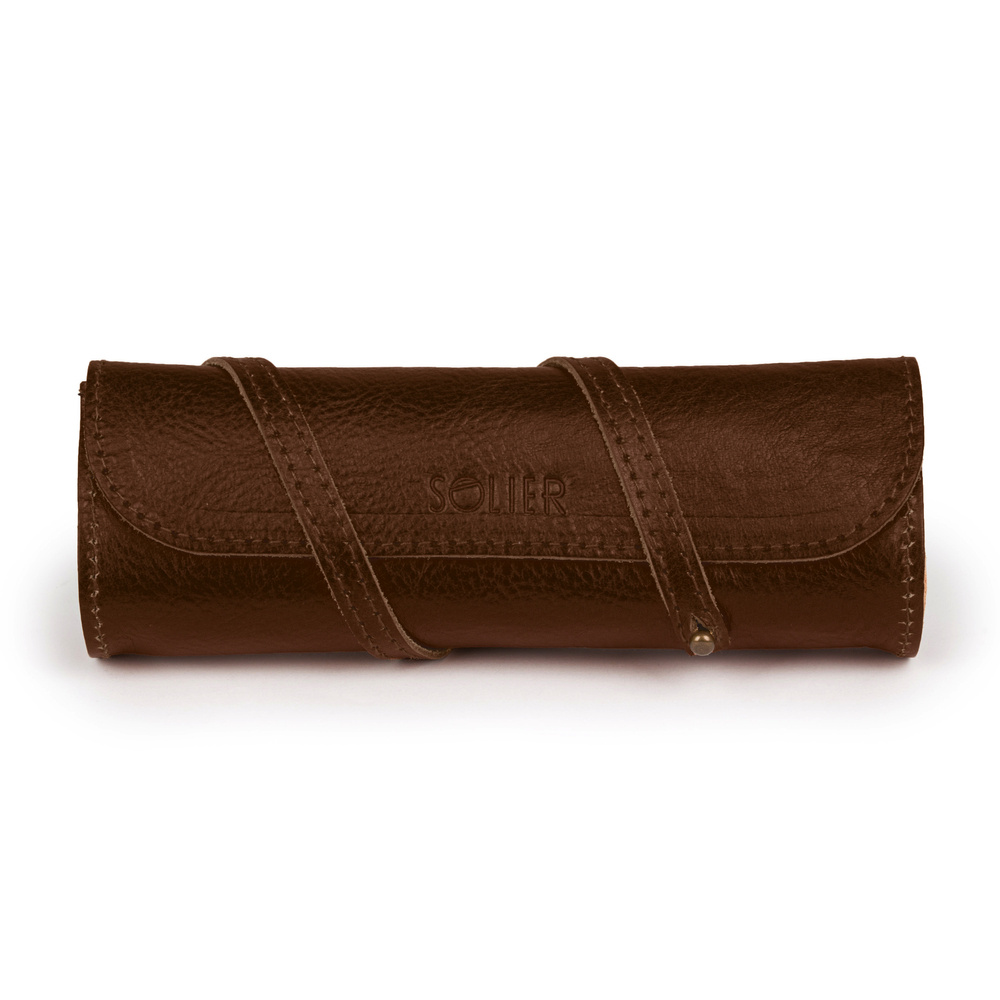 Wiązany skórzany piórnik etui na długopisy Solier SA52 ciemny brąz