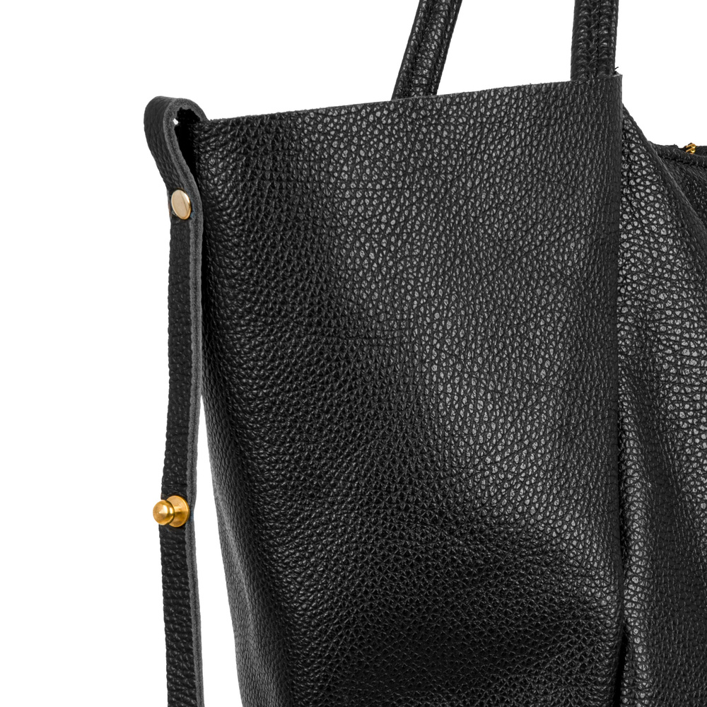 Torba wykonana jest z najwyższej jakości naturalnej skóry w klasycznym, czarnym kolorze, łącząc styl i funkcjonalność.