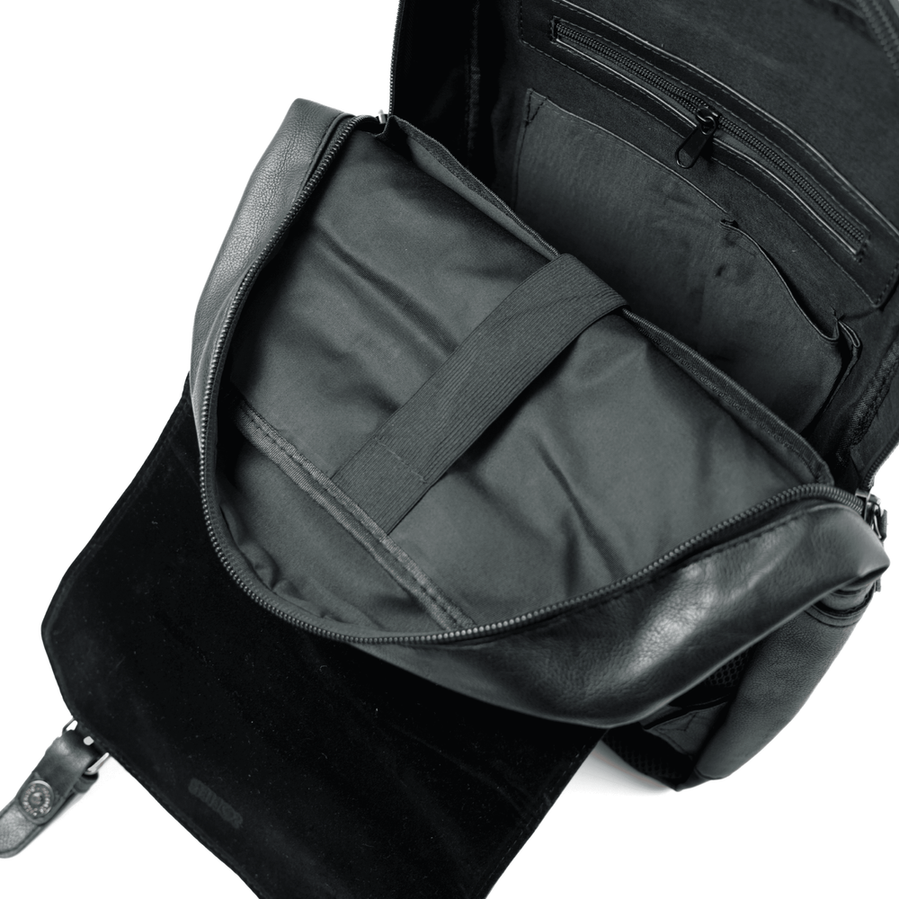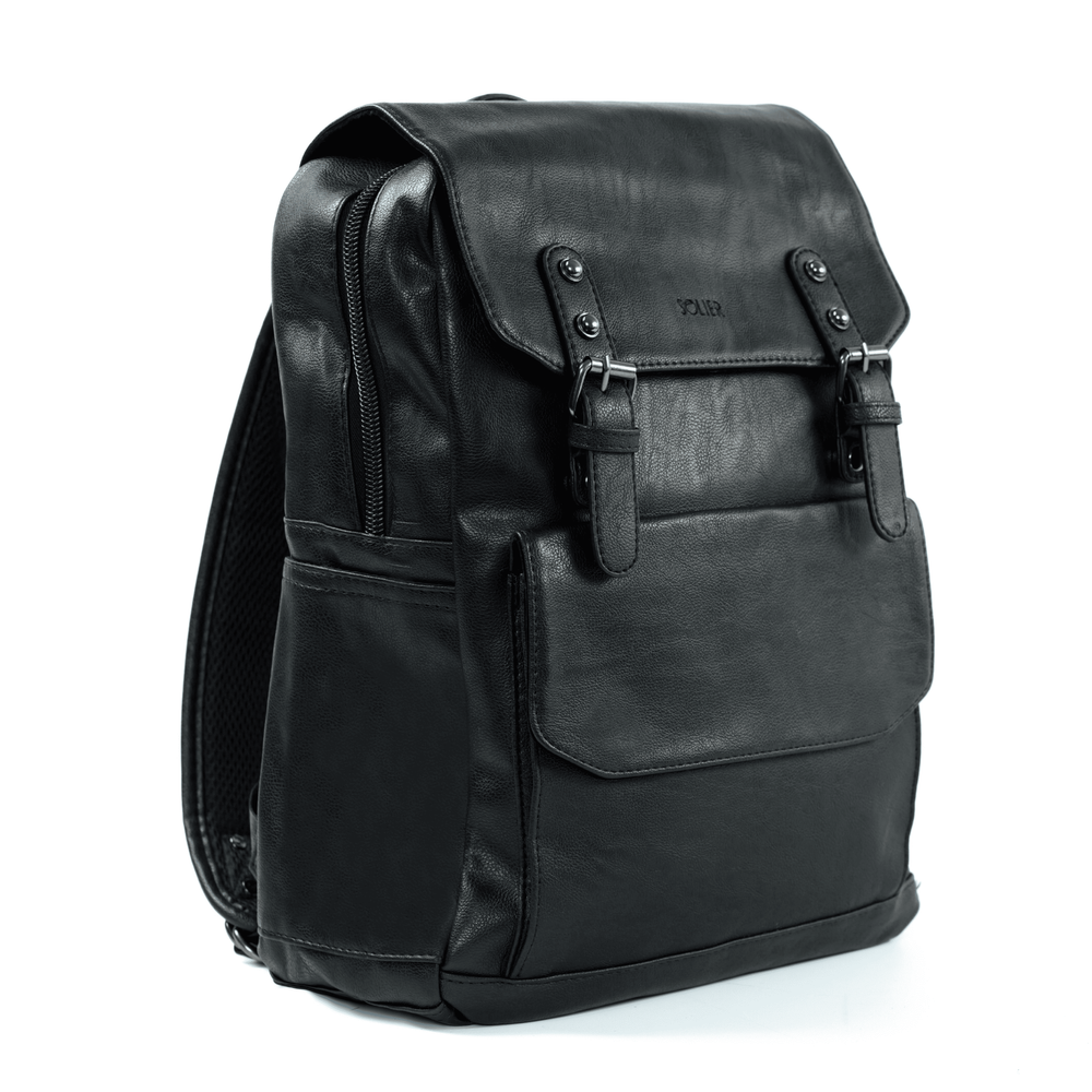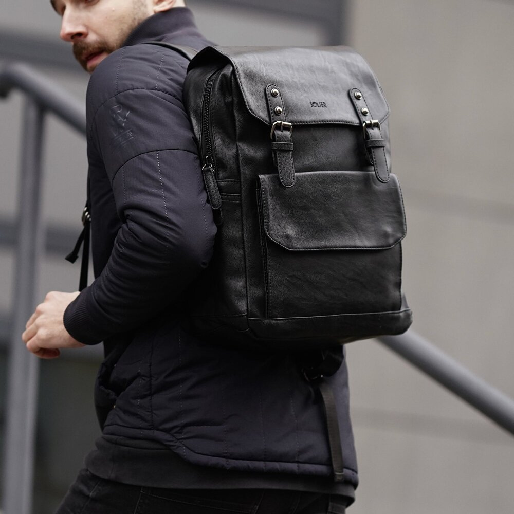 - Czarny plecak Solier Orion łączy elegancki wygląd z praktycznymi rozwiązaniami, doskonale sprawdzając się zarówno w codziennym użytkowaniu w miejskim zgiełku, jak i podczas podróży.