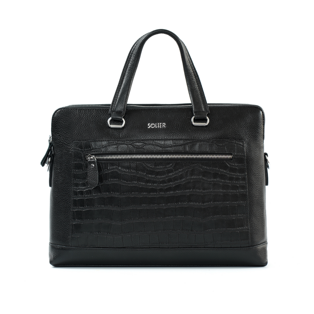 SELVANNA marki Solier to doskonała torba skórzana na laptopa, która łączy wyrafinowany styl z praktycznymi rozwiązaniami. Wykonana z wysokiej jakości matowej skóry z modnym efektem "wężowej skóry", idealnie nadaje się zarówno do pracy, jak i na spotkania biznesowe. Jej elegancki wygląd podkreślają srebrne okucia oraz solidne zamki, które zapewniają nie tylko trwałość, ale również świetny wygląd.