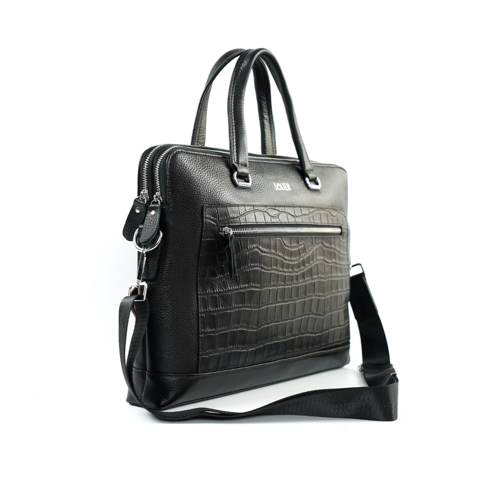 - Styl i wytrzymałość: Gruba, matowa skóra z modnym efektem "snake" oraz srebrne zamki dodają torbie wyrafinowanego, a jednocześnie nowoczesnego charakteru.