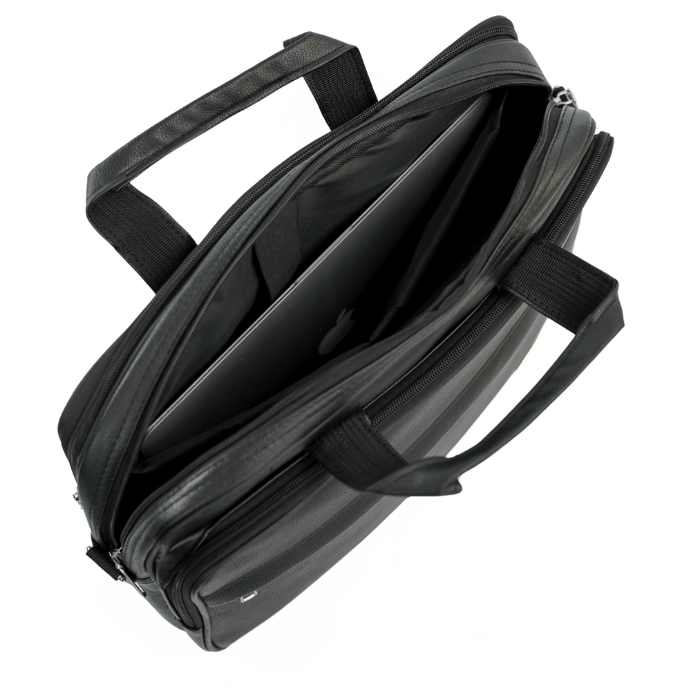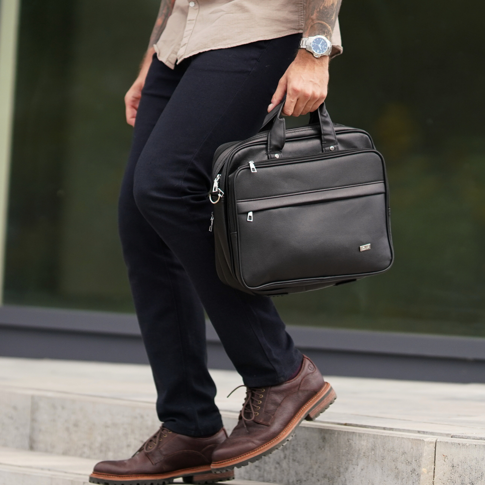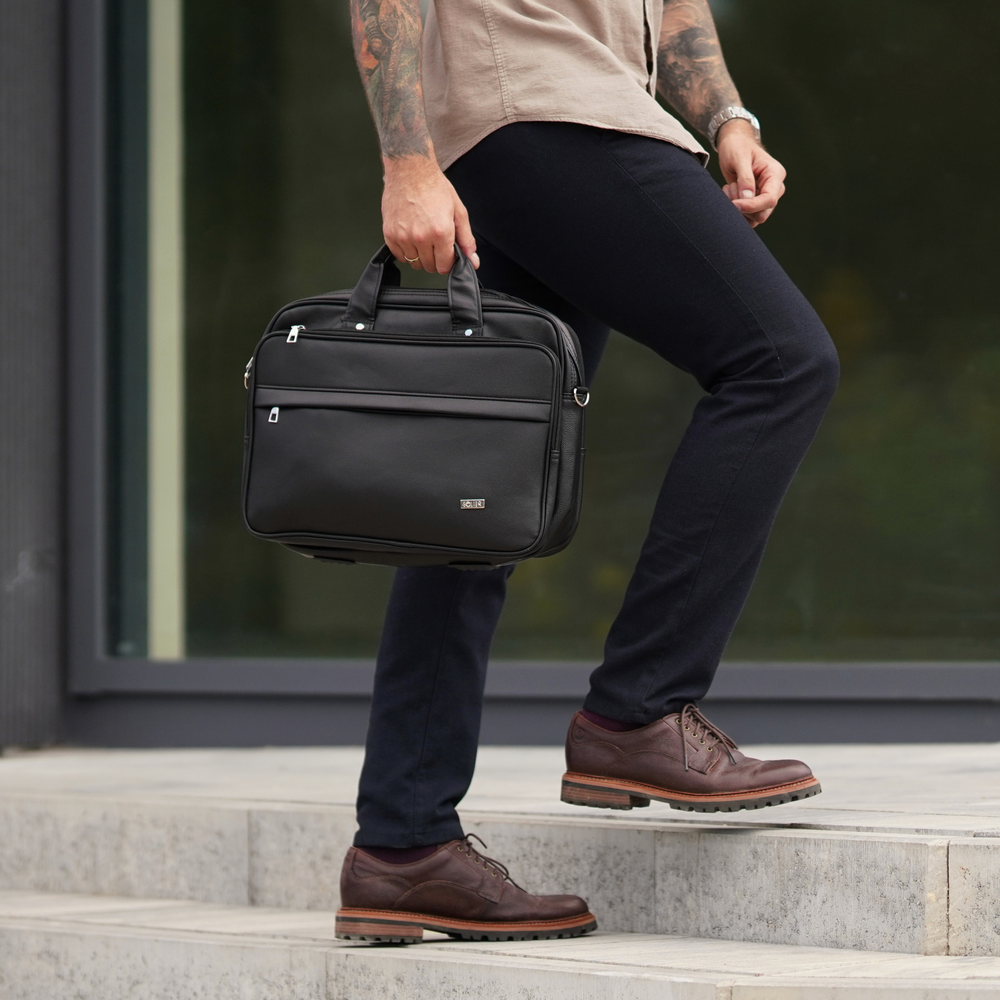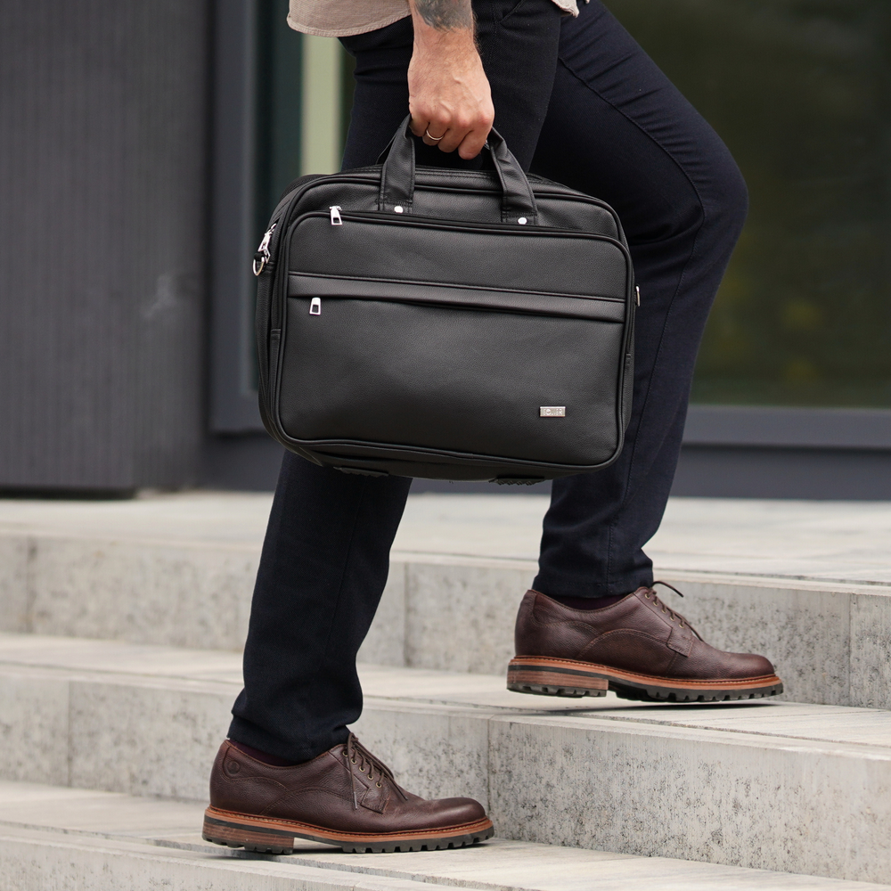 Torba została zaprojektowana z myślą o mężczyznach w biznesie, którzy potrzebują miejsca na laptopa do 15,6 cala oraz dokumenty A4. Dwie przestronne zewnętrzne komory zapinane na zamek ułatwiają organizację i zapewniają szybki dostęp do niezbędnych rzeczy – od teczek i notesów po akcesoria biurowe. To idealna męska torba do pracy, która pomaga utrzymać porządek przez cały dzień.