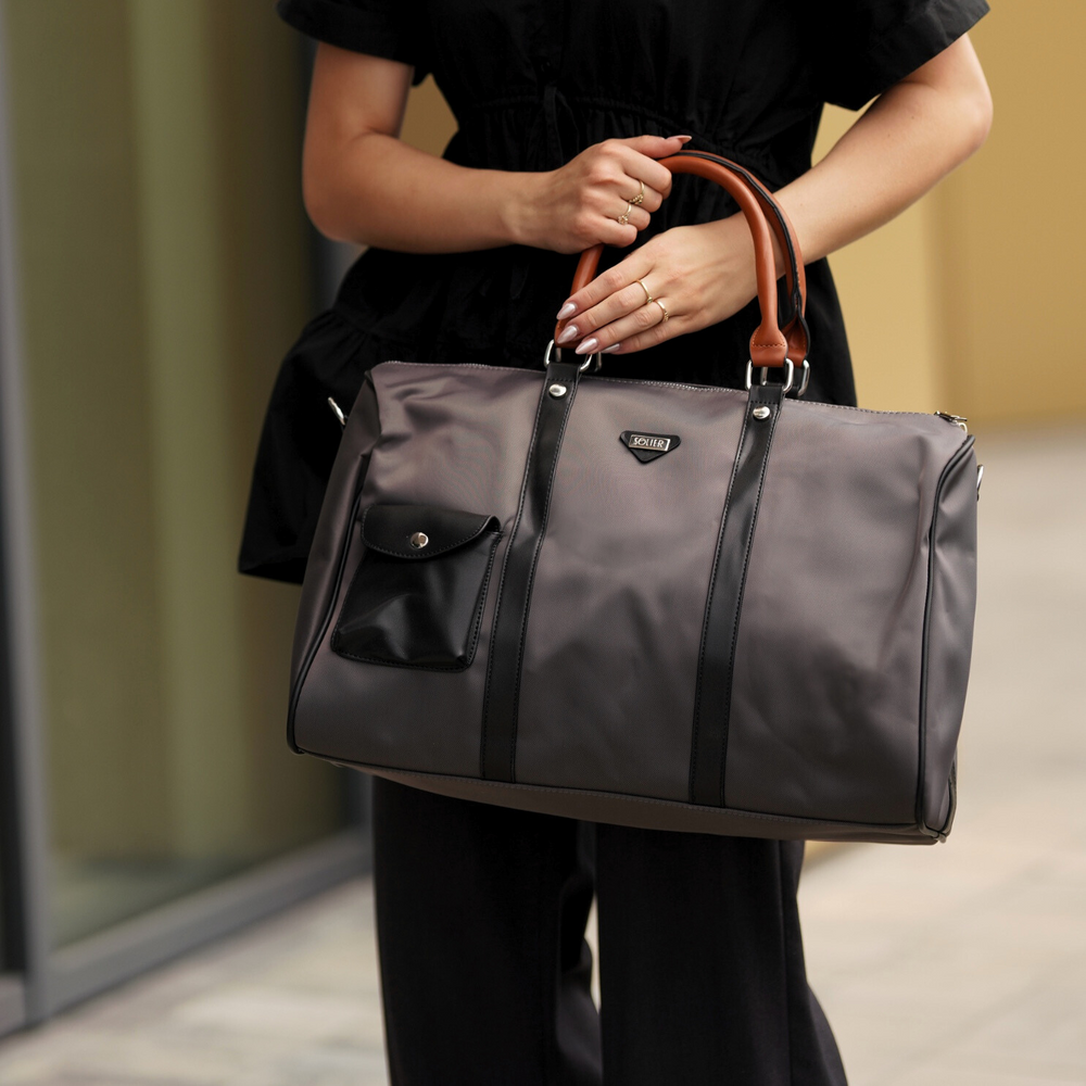 Solier Barrley to duża torba weekendowa, która łączy minimalistyczny design z maksymalną funkcjonalnością. Dzięki lekkiej konstrukcji i pojemnemu wnętrzu świetnie sprawdzi się na krótkie wyjazdy, jako torba podróżna, torba sportowa lub bagaż podręczny. Jej uniwersalny styl, podkreślony eleganckimi detalami i kontrastowymi uchwytami, pasuje zarówno do casualowych, jak i bardziej formalnych stylizacji.