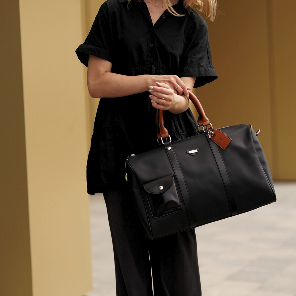Solier Barrley to duża torba weekendowa, która łączy minimalistyczny design z maksymalną funkcjonalnością. Dzięki lekkiej konstrukcji i pojemnemu wnętrzu świetnie sprawdzi się na krótkie wyjazdy, jako torba podróżna, torba sportowa lub bagaż podręczny. Jej uniwersalny styl, podkreślony eleganckimi detalami i kontrastowymi uchwytami, pasuje zarówno do casualowych, jak i bardziej formalnych stylizacji.