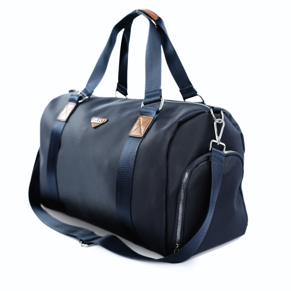 Minimalistyczny styl i ozdobna kieszeń z przodu nadają torbie nowoczesnego wyglądu, który świetnie komponuje się zarówno ze sportowymi, jak i bardziej eleganckimi stylizacjami. Długie, wzmocnione uchwyty oraz odpinany pasek na ramię zapewniają wygodę noszenia – niezależnie od tego, czy używasz jej jako torby na wyjazd, torby sportowej, czy torby do pracy.