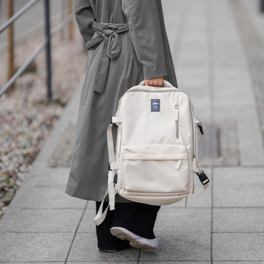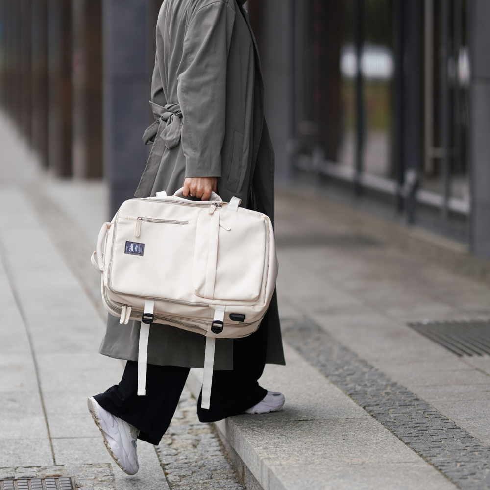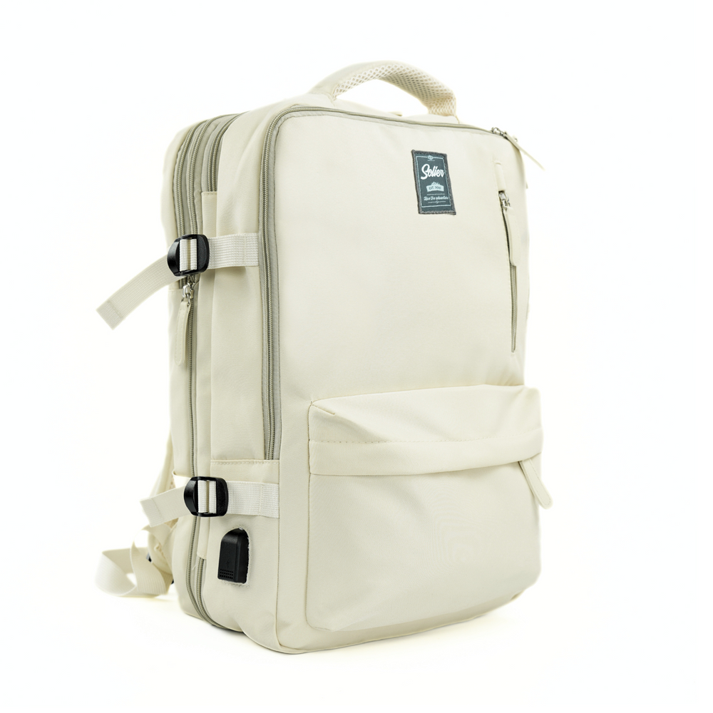 Plecak Solier FV06 Noa wyróżnia się funkcjonalnym systemem noszenia. Możesz zarzucić go na plecy, gdy potrzebujesz swobody ruchu, albo chwycić za boczny uchwyt i nieść jak klasyczną torbę podróżną.