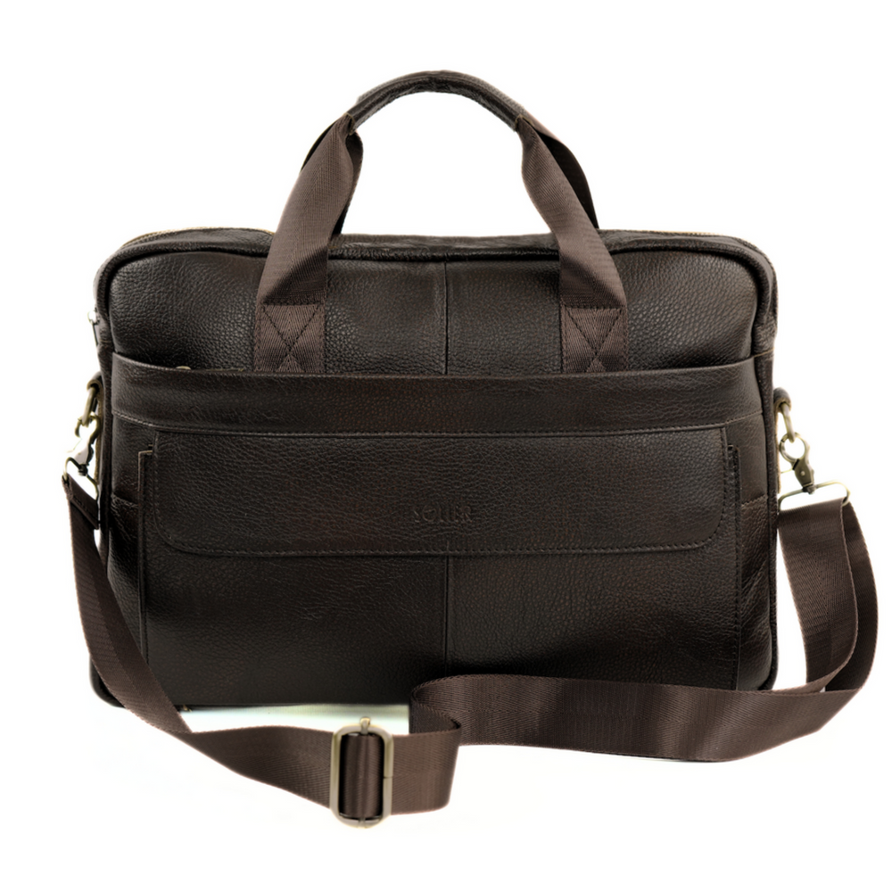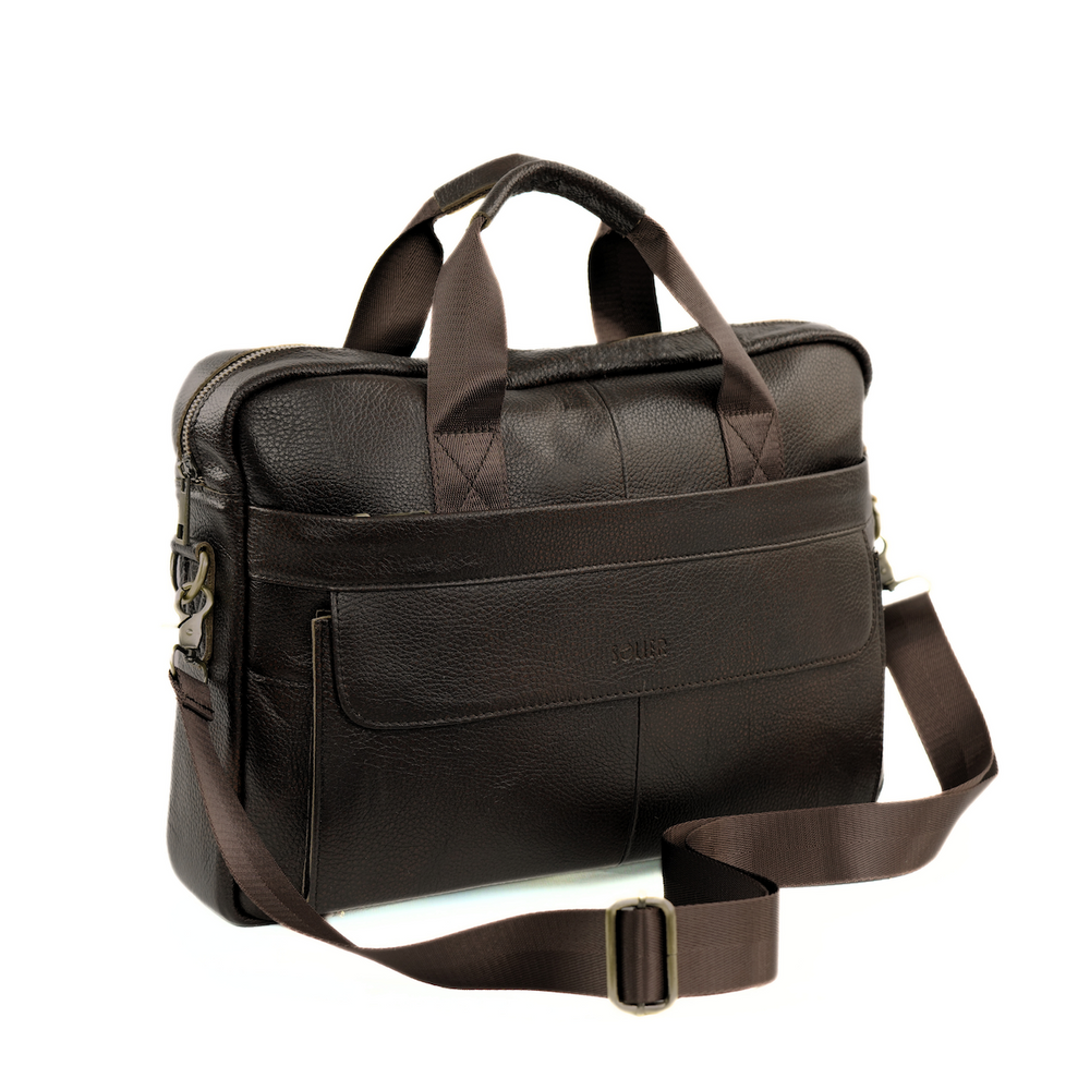 Męska torba na ramię skórzana na laptopa Solier SL46 Dune ciemny brąz