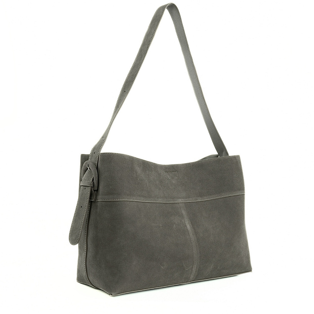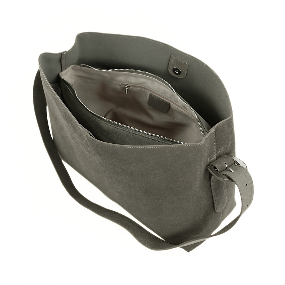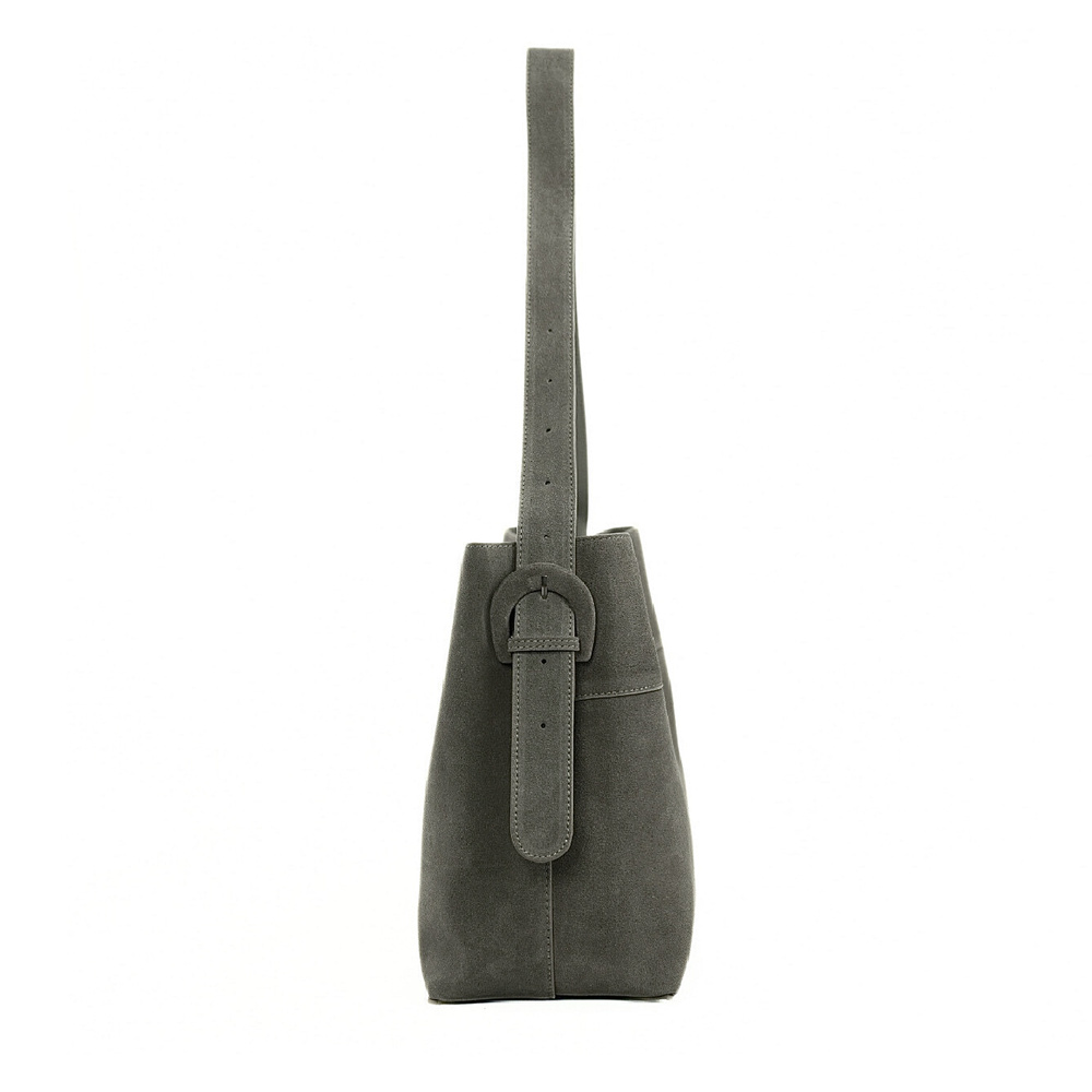 Skórzana zamszowa torba shopper z klamrą na ramię Solier FL39 Maya szara