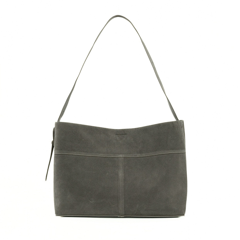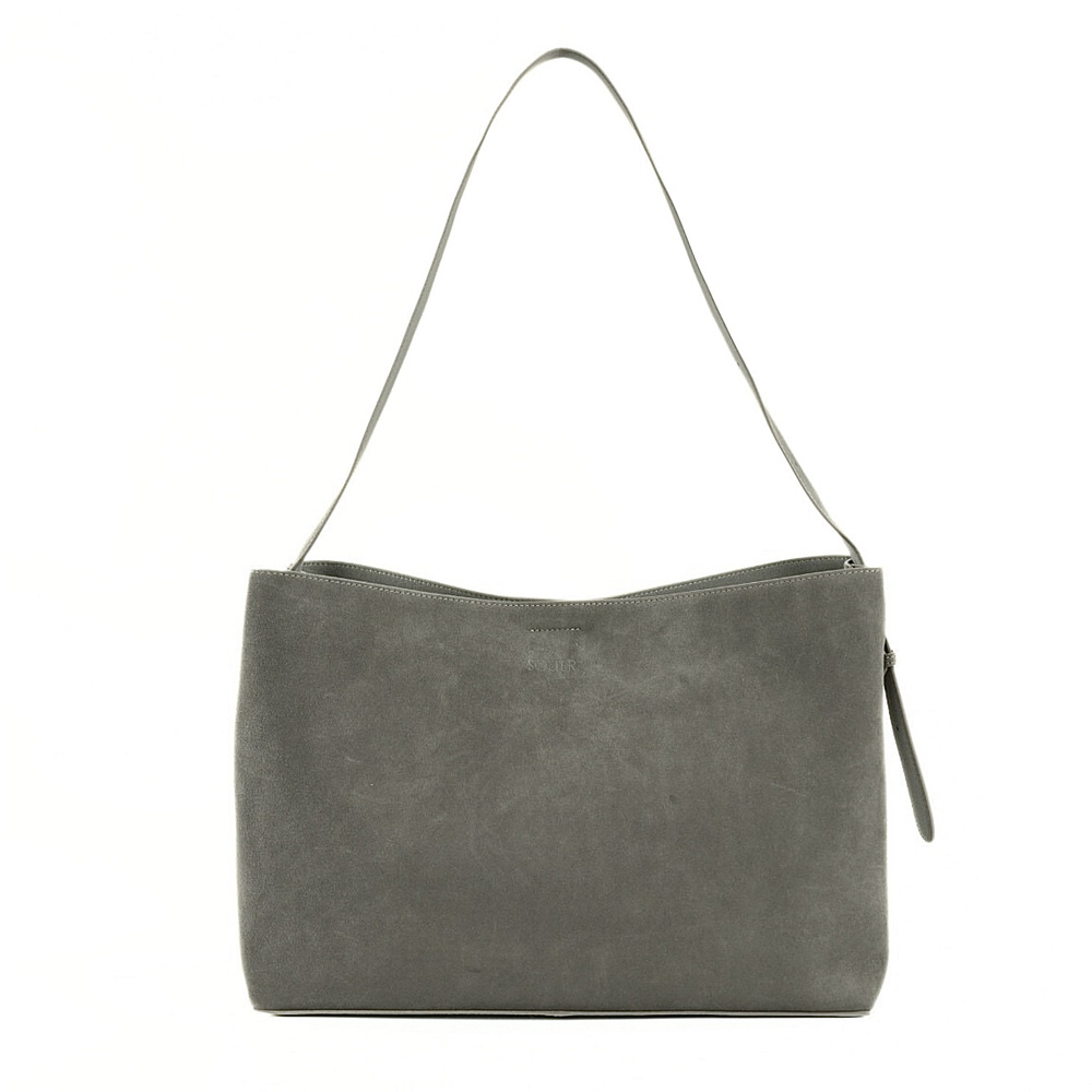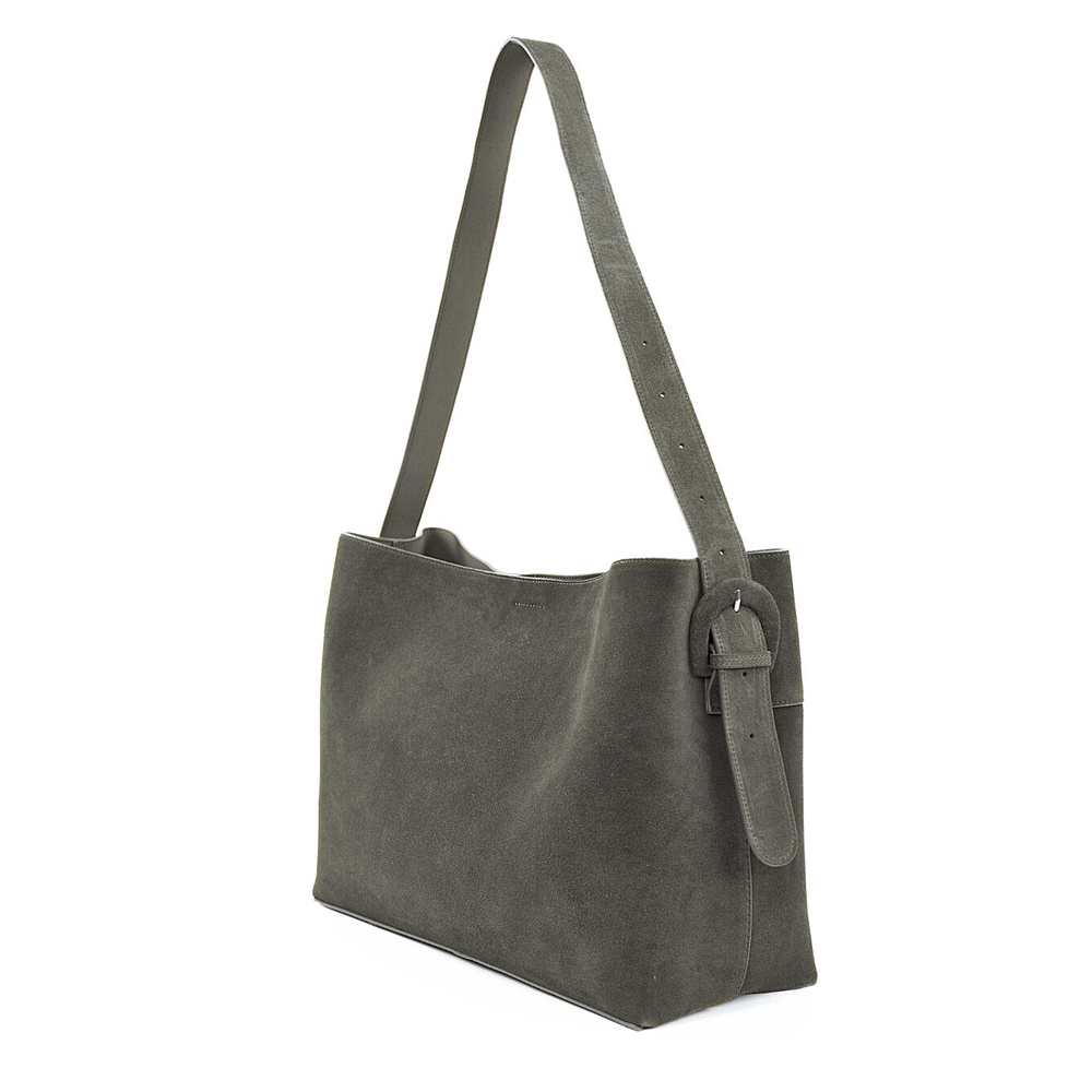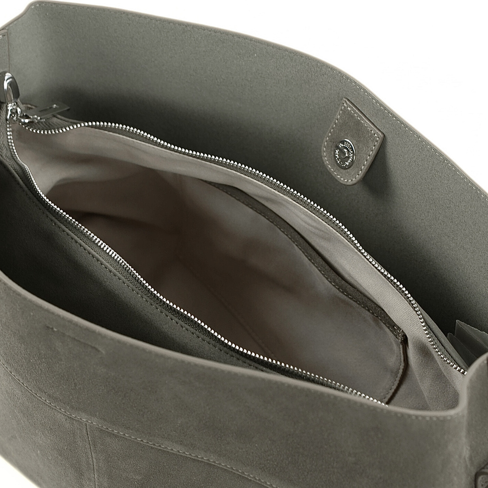 Skórzana zamszowa torba shopper z klamrą na ramię Solier FL39 Maya szara
