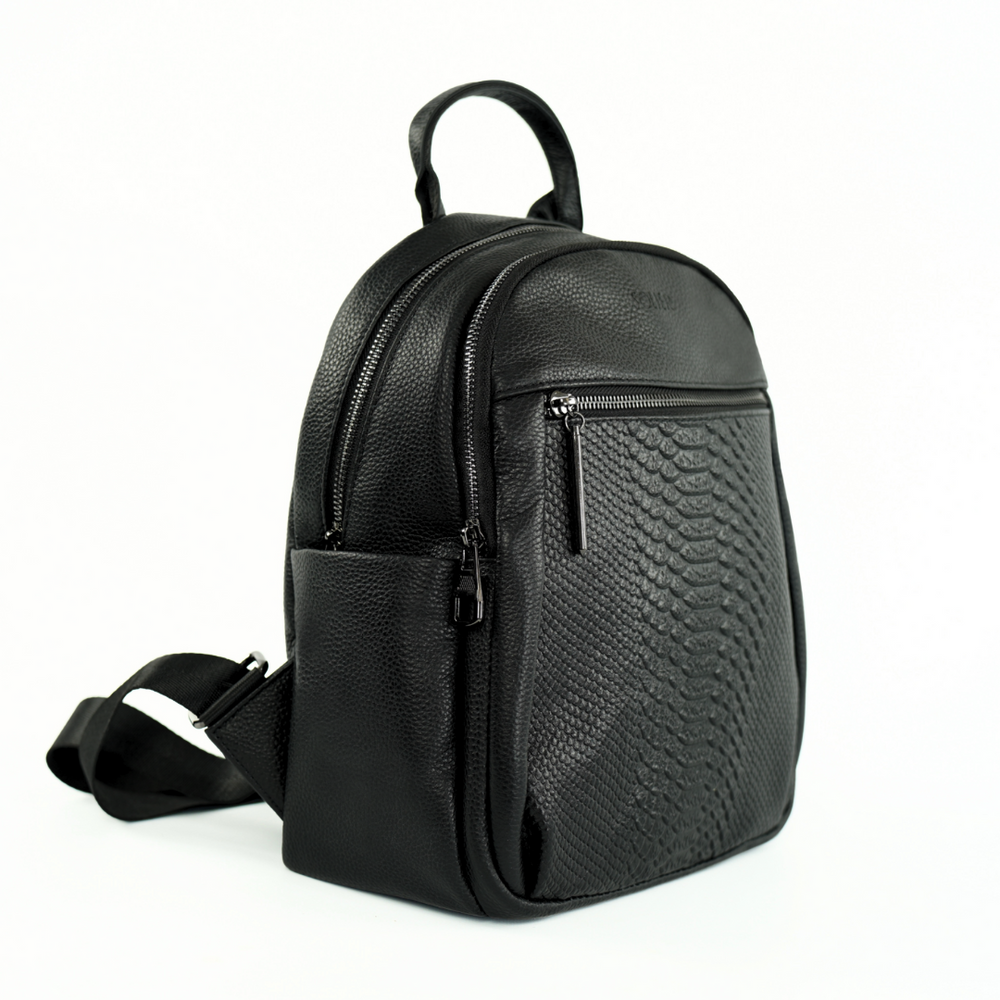 Solier FV07 Elan to plecak wykonany ze skóry naturalnej, zaprojektowany z myślą o komforcie i uniwersalnym zastosowaniu. Czarna kolorystyka i minimalistyczny design sprawiają, że doskonale sprawdza się zarówno w codziennych, jak i bardziej eleganckich stylizacjach. To funkcjonalna alternatywa dla torebki, która łączy wygodę noszenia z ponadczasowym wyglądem.