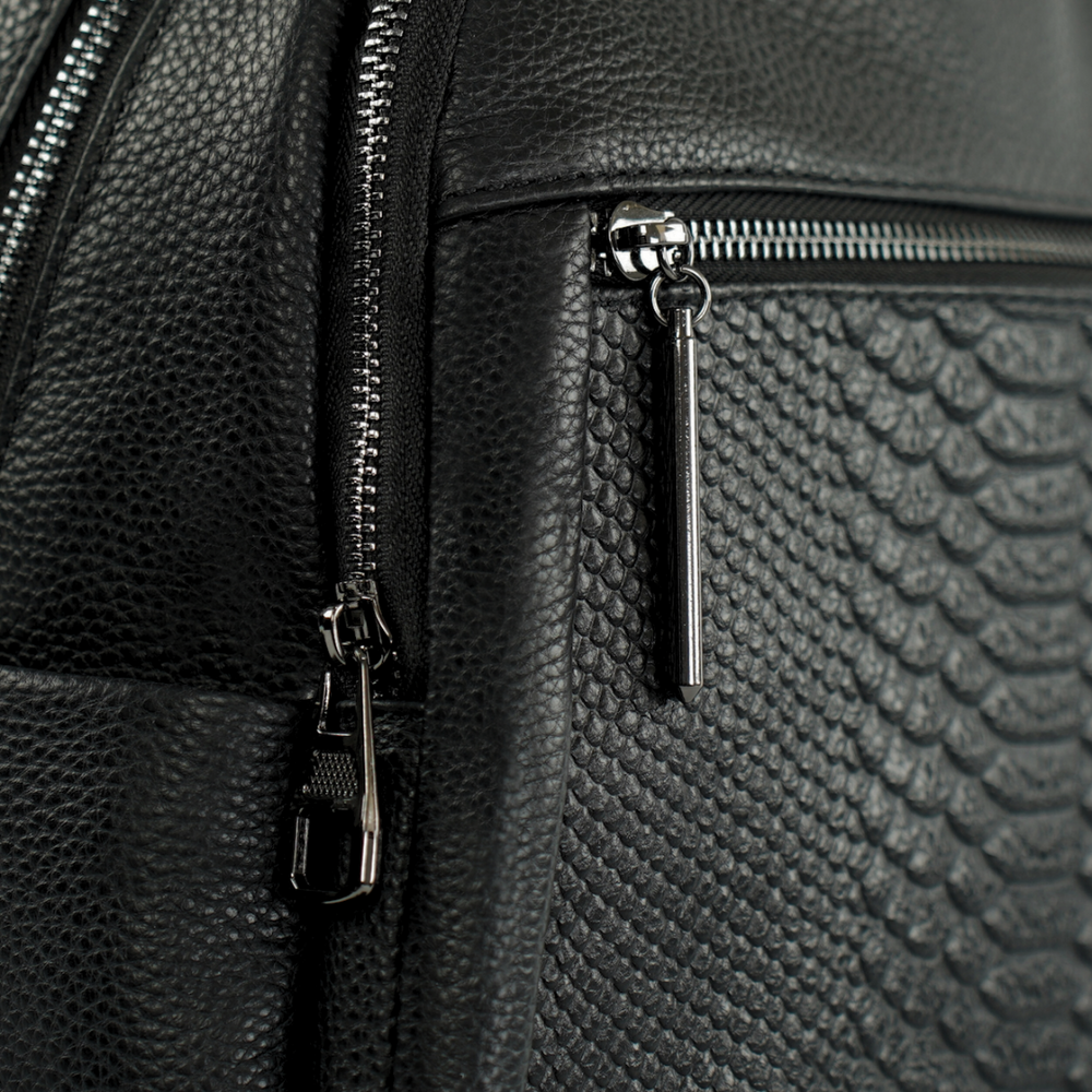 Wewnątrz skórzanego plecaka znajduje się jedna mała kieszonka na zamek idealna na drobiazgi, jedna duża kieszeń na zamek do przechowywania cenniejszych przedmiotów oraz jedna głęboka kieszeń, która pomieści większe rzeczy. Na zewnątrz plecak wyposażony jest w dwie kieszenie po bokach oraz jedną przednią kieszeń zamykaną na zamek, zapewniając łatwy dostęp do najpotrzebniejszych rzeczy. Na plecach również umieściliśmy kieszonkę na zamek, dzięki czemu masz pewność, że najcenniejsze rzeczy będą bezpieczne.