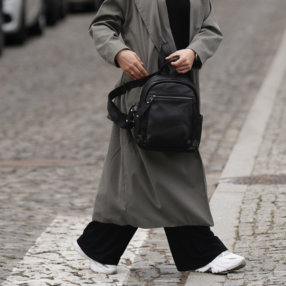 Czerń nigdy nie wychodzi z mody, a naturalna skóra dodaje jej ponadczasowego charakteru. Subtelne detale i klasyczna forma sprawiają, że ten plecak pasuje do każdego stylu – od casualowego po smart casual.
