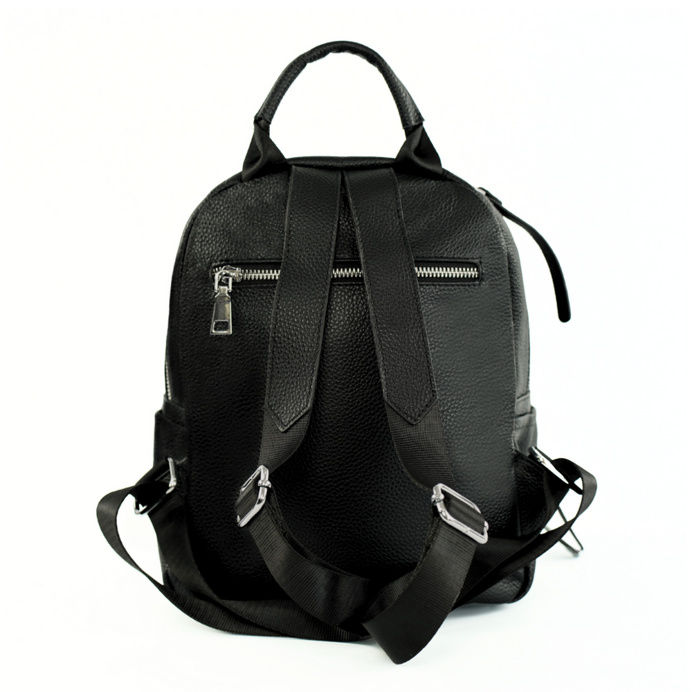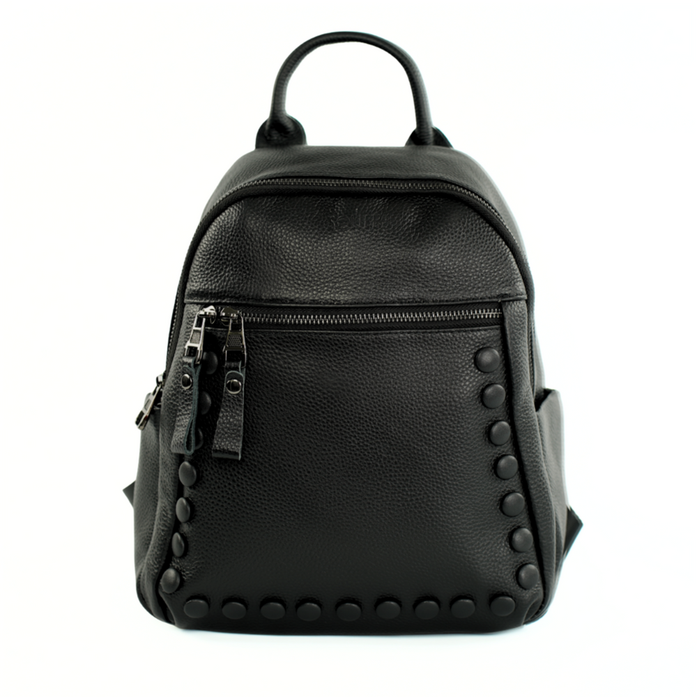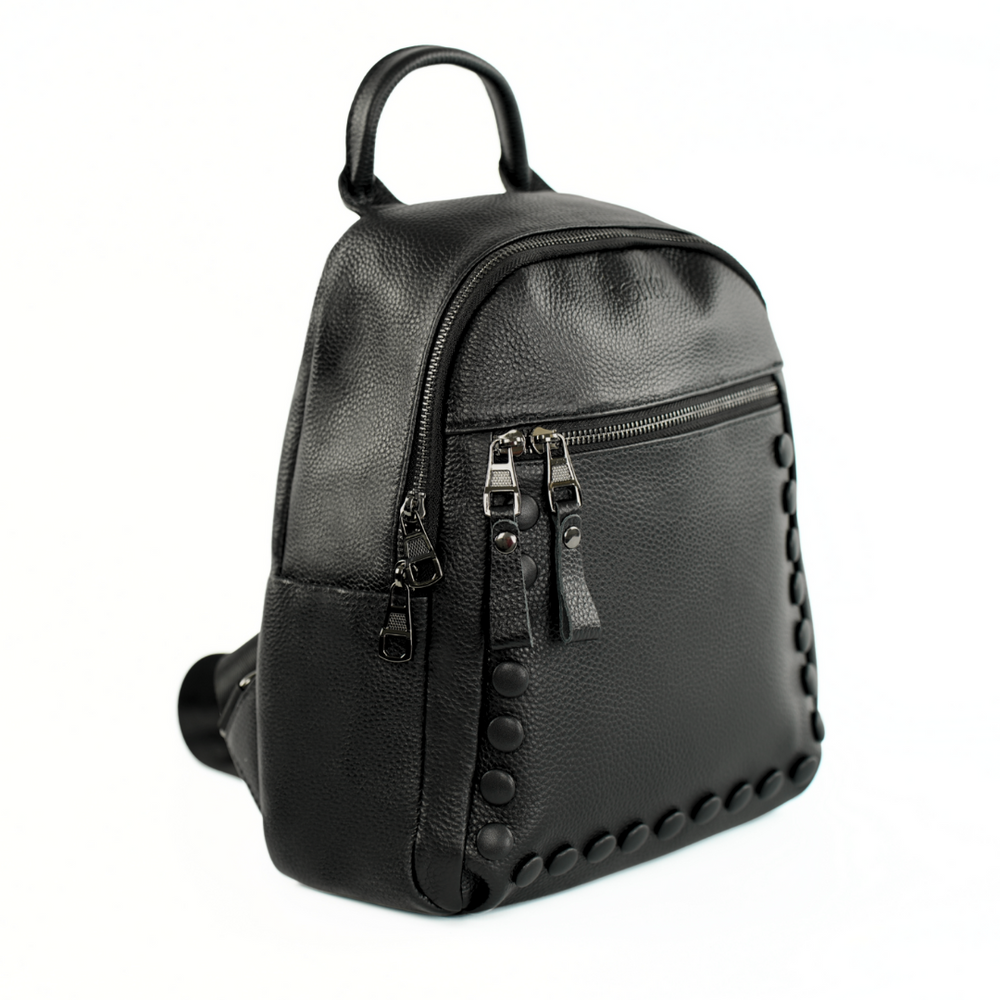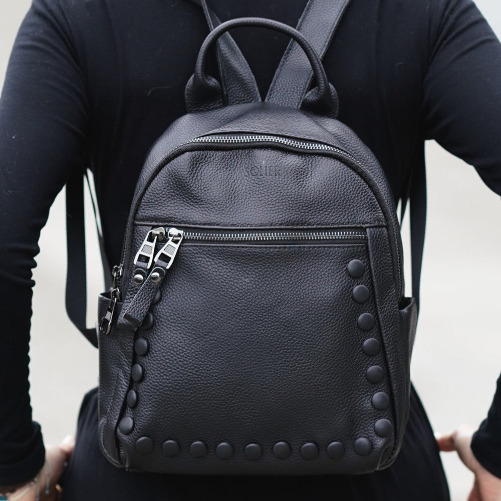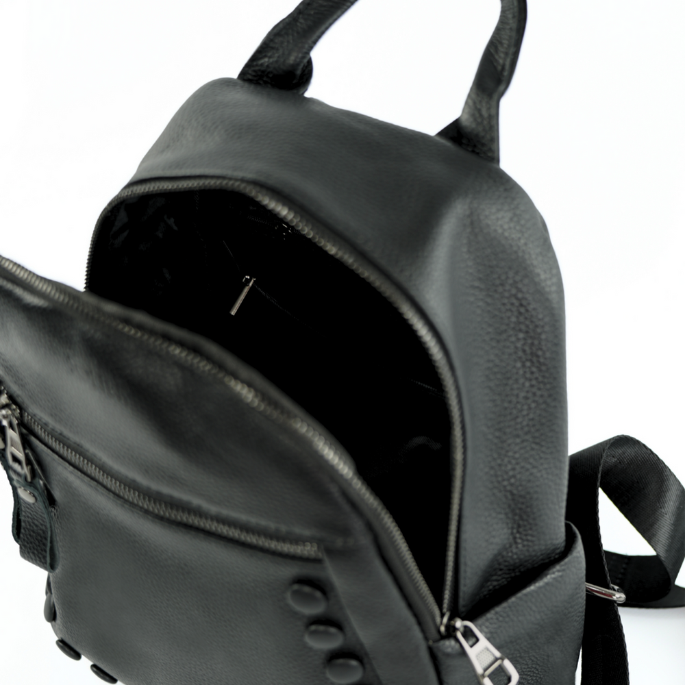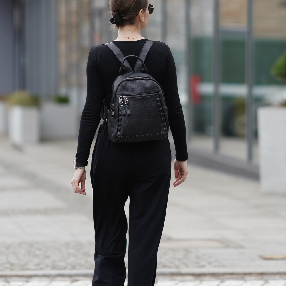 Dzięki uniwersalnemu kolorowi czarny plecak skórzany sprawdzi się zarówno w codziennym, jak i bardziej eleganckim zestawieniu. Minimalistyczne wykończenie podkreśla jego ponadczasowy charakter. Plecak skórzany ma z przodu czarne ozdobne guziczki, które subtelnie podkreślają jego stylowy wygląd i dodają oryginalności.
