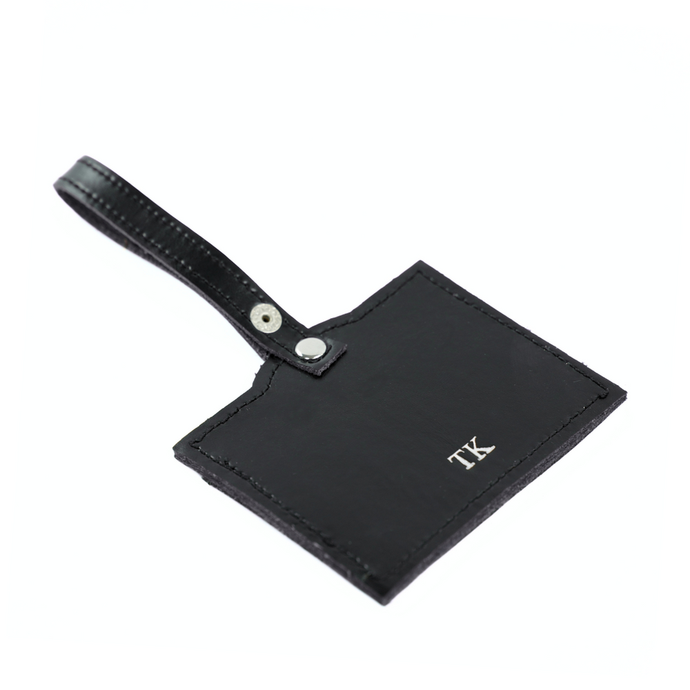Personalizowany skórzany identyfikator do bagażu, zawieszka na walizkę - czarny