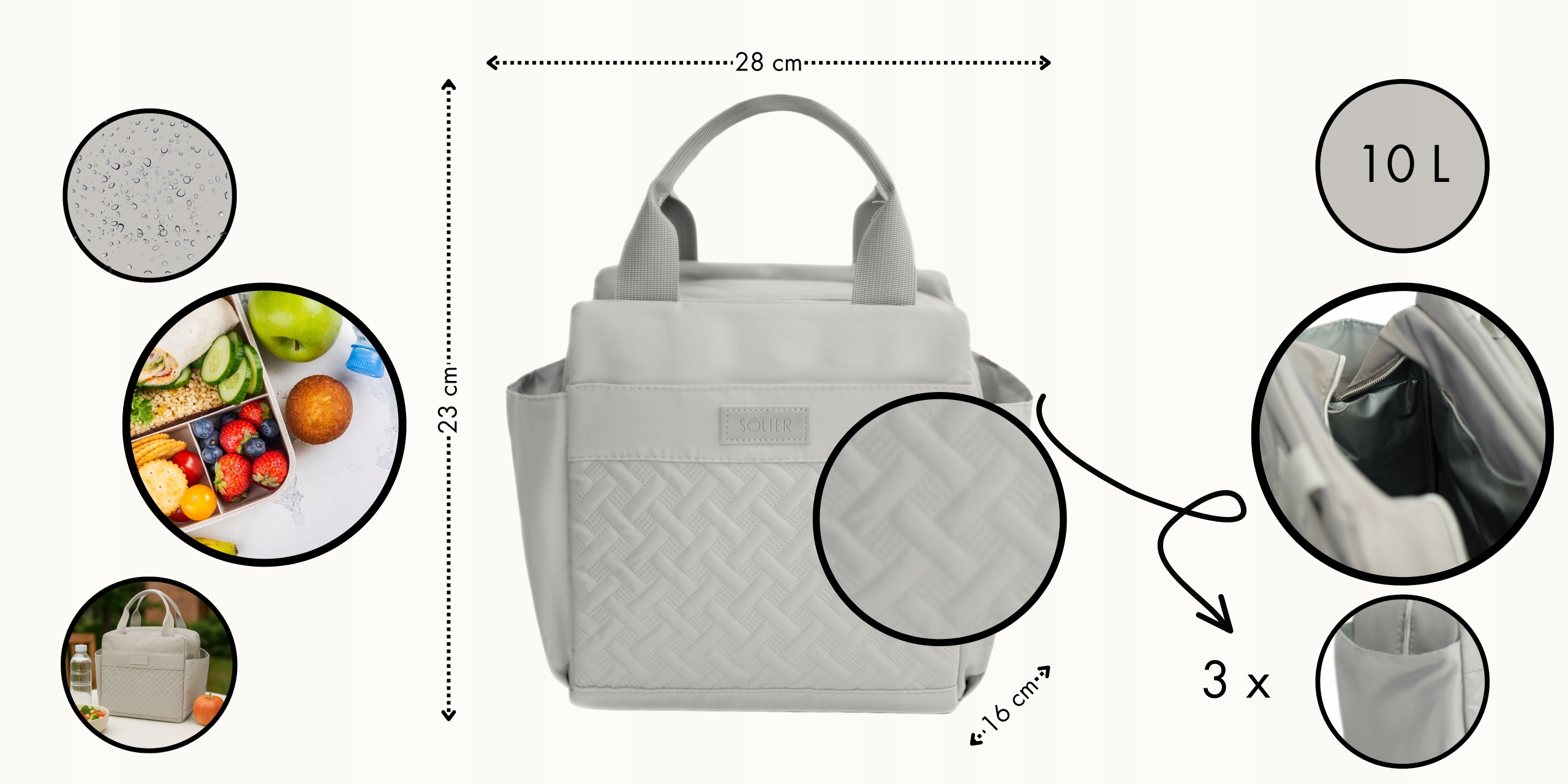 Torba termiczna lunch box Solier – pikowana, stylowa i praktyczna | do pracy, szkoły, na uczelnię i wakacje