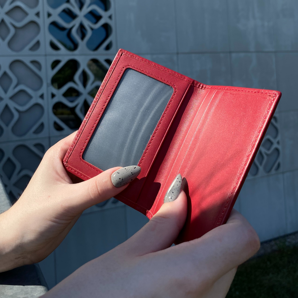 Portfel na karty elegancki skórzany cardholder czerwony Solier SW45 RED