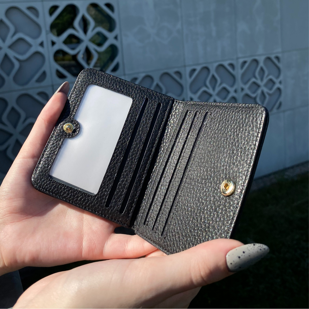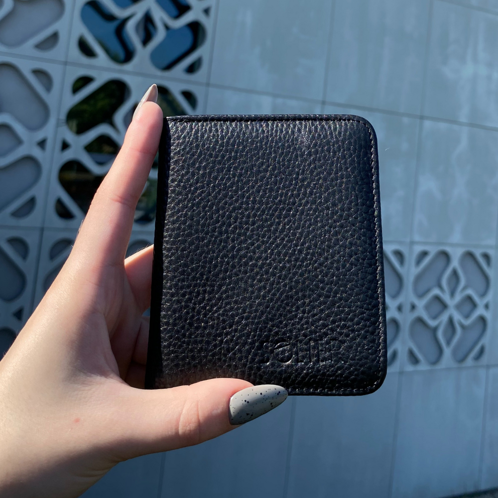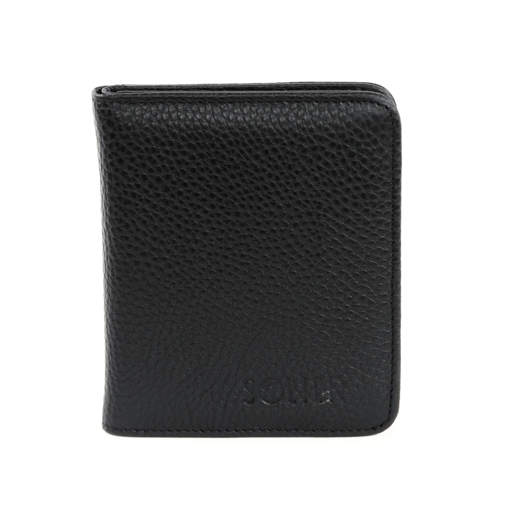 Czarny portfel z naturalnej skóry kompaktowy model Solier SW50 BLACK