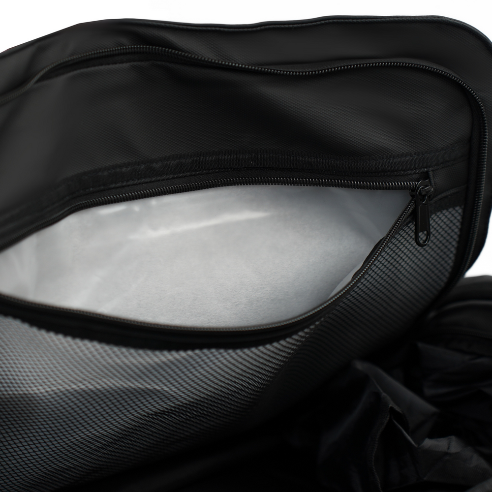 Specjalna przegroda na buty lub żywność, wyściełana łatwą w czyszczeniu powłoką, z praktycznym wywietrznikiem i zamkiem błyskawicznym. Zachowaj porządek i higienę nawet podczas intensywnych podróży.