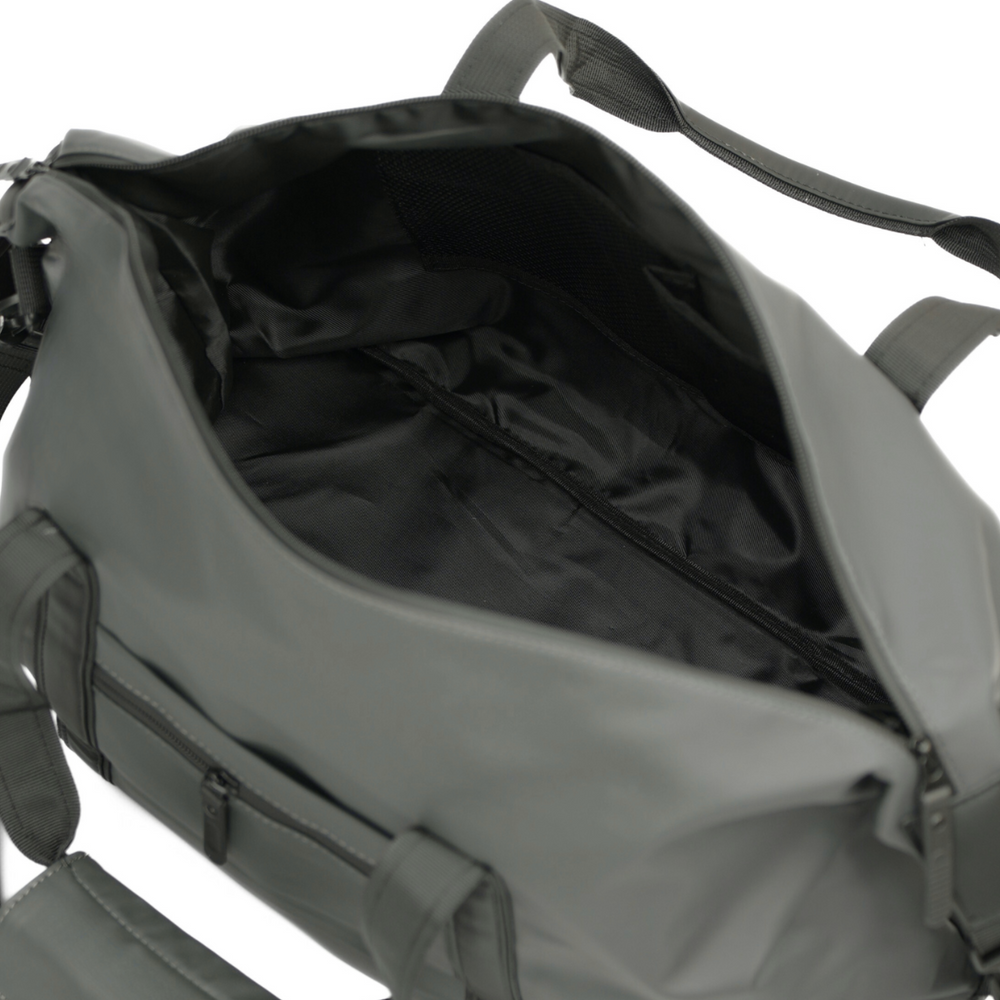 Główna komora bez trudu pomieści wszystko, czego potrzebujesz na weekendowy wypad, krótki urlop czy delegację. Dzięki praktycznym przegrodom z siatki i dużej kieszeni na zamek zawartość torby zawsze pozostaje uporządkowana. To duża torba weekendowa, która sprawdzi się również jako torba na siłownię lub trening.