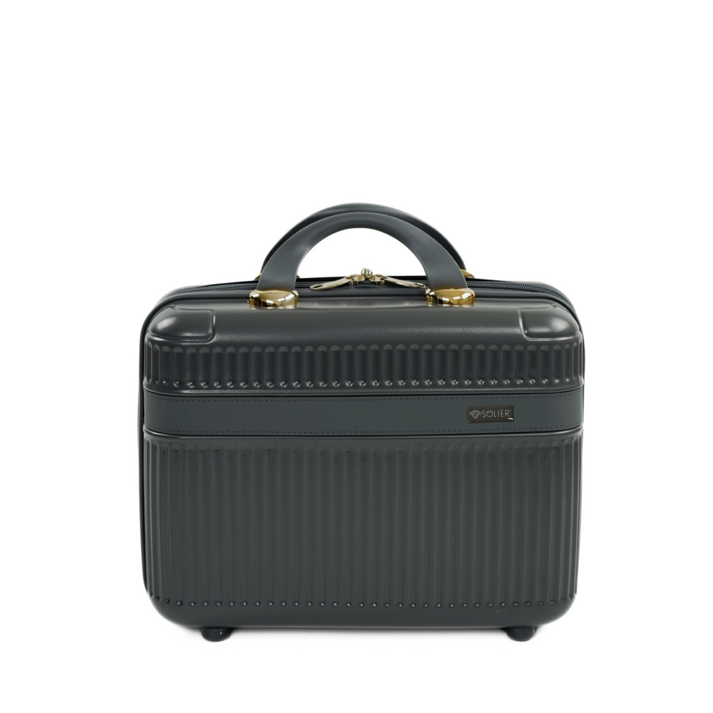 Kompaktowy kuferek podróżny Solier NOKIRO to praktyczny dodatek do każdej walizki. Wykonany z trwałego i nieprzemakalnego tworzywa ABS, zapewnia bezpieczeństwo przewożonym kosmetykom, dokumentom czy akcesoriom. Posiada przemyślane wnętrze z wieloma kieszonkami, a dzięki gumowemu uchwytowi i pasowi mocującemu można go wygodnie nosić lub zawiesić na teleskopie walizki. Idealny na krótkie wyjazdy i jako uzupełnienie bagażu.