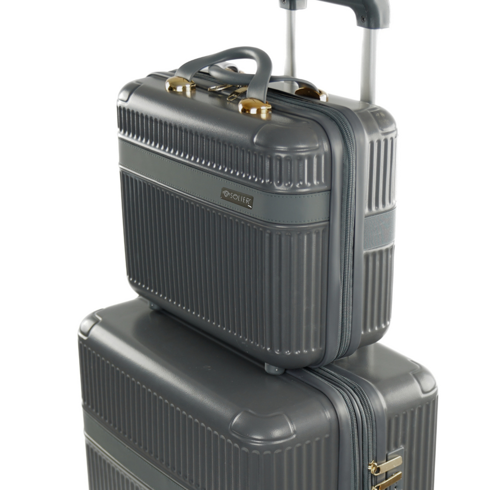Kuferek Solier NOKIRO idealnie sprawdzi się jako bagaż podręczny podczas podróży samolotem. Dzięki elastycznemu paskowi z tyłu można go łatwo nałożyć na teleskopową rączkę walizki i wygodnie wnieść na pokład.
