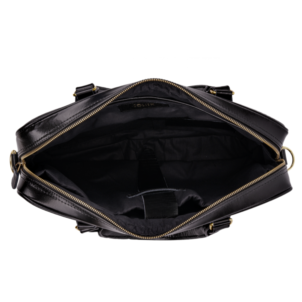 - Klasyczna, kompaktowa torba na ramię i do ręki z miejscem na laptopa.