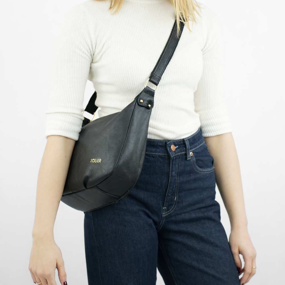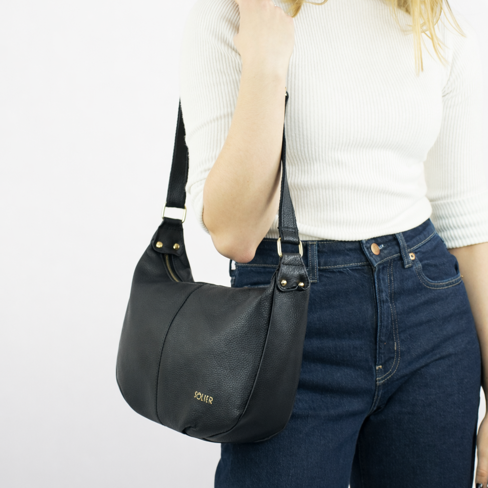 Skórzana torba damska bagietka na ramię Solier FL53 MIRELLE czarna