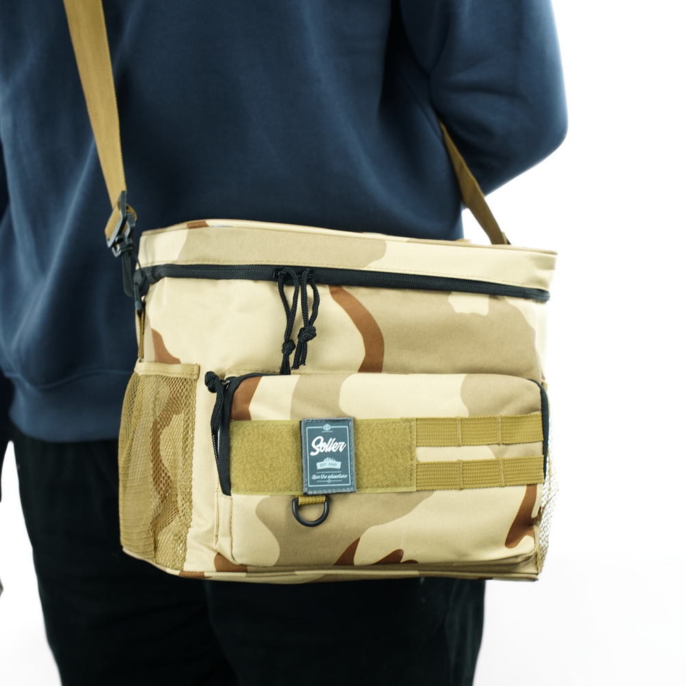• Solier Durathor Series to solidna torba termiczna w moro, która dzięki wytrzymałej Cordurze, skutecznej izolacji i przemyślanej konstrukcji sprawdzi się jako lunchbox lub torba piknikowa w terenie, podróży i na co dzień, z dodatkową możliwością personaliz