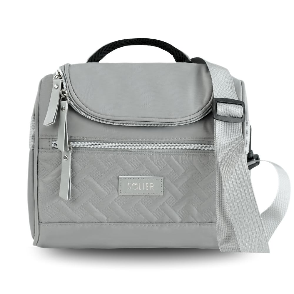 Torba termiczna Solier lunch box - elegancka torba izolacyjna z długim paskiem na ramię - szara