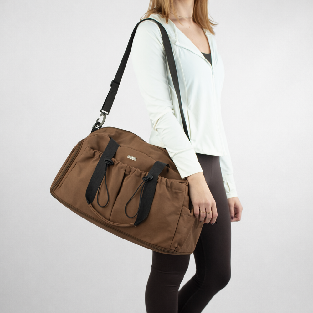 Moira zachwyca prostą formą i nienachalnym wzornictwem. Stonowane kolory ziemi i pastelowe akcenty wpisują się w styl kolekcji EASE – spokojny, świadomy, kobiecy. To torba, która wygląda dobrze zarówno na siłowni, w studio pilates, jak i w pociągu do ulubionego miasta.